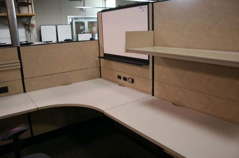Teknion Leverage Corner Office Cubical With Hutch And Black Teknion Pedestal
