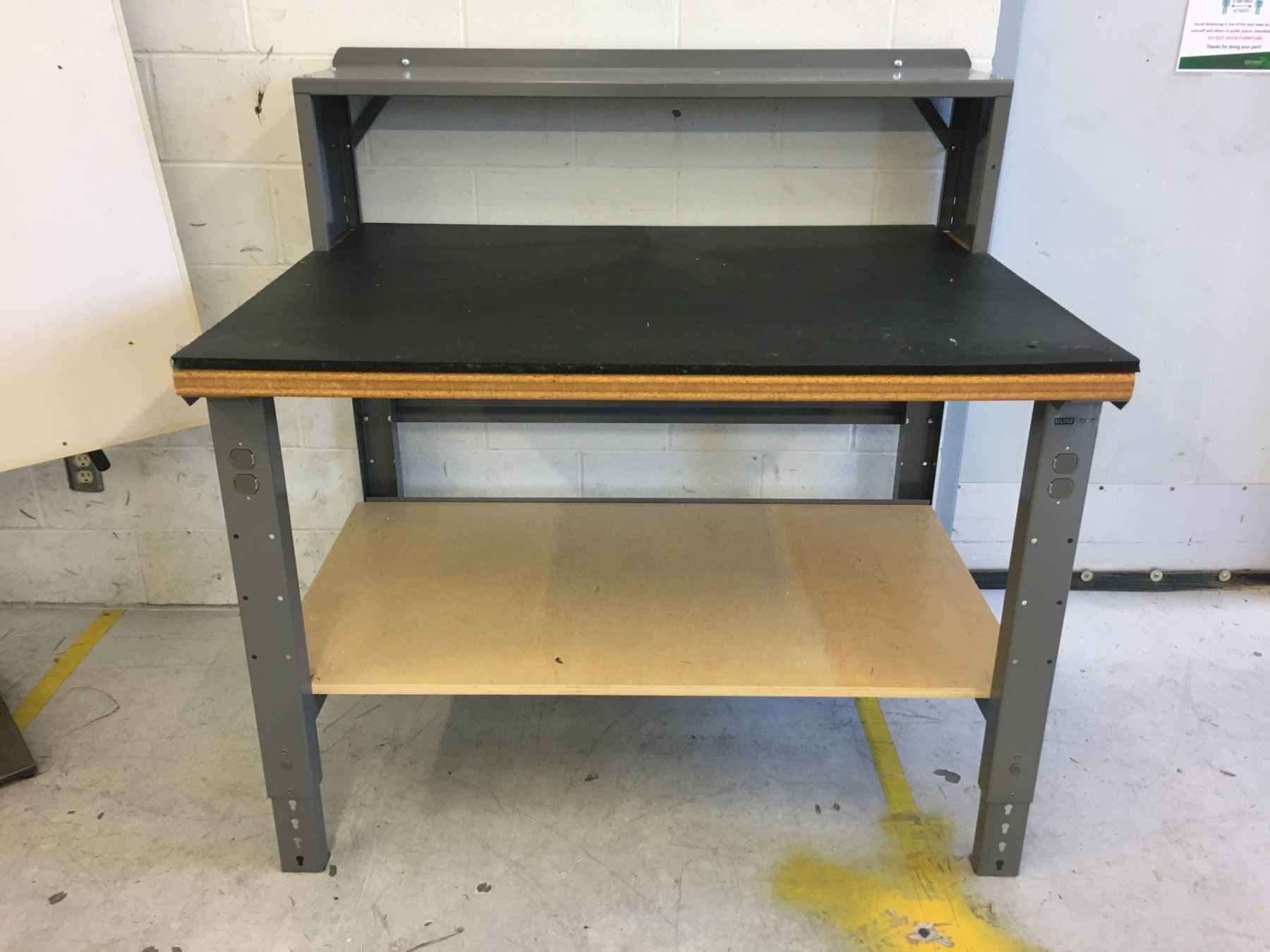 U-LINE ADJUSTABLE HEIGHT METAL WORK BENCH WITH THICK BLACK RUBBER MAT- APPROX.4FT X 3FT