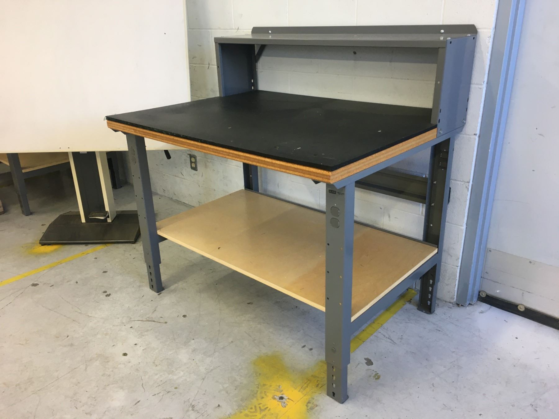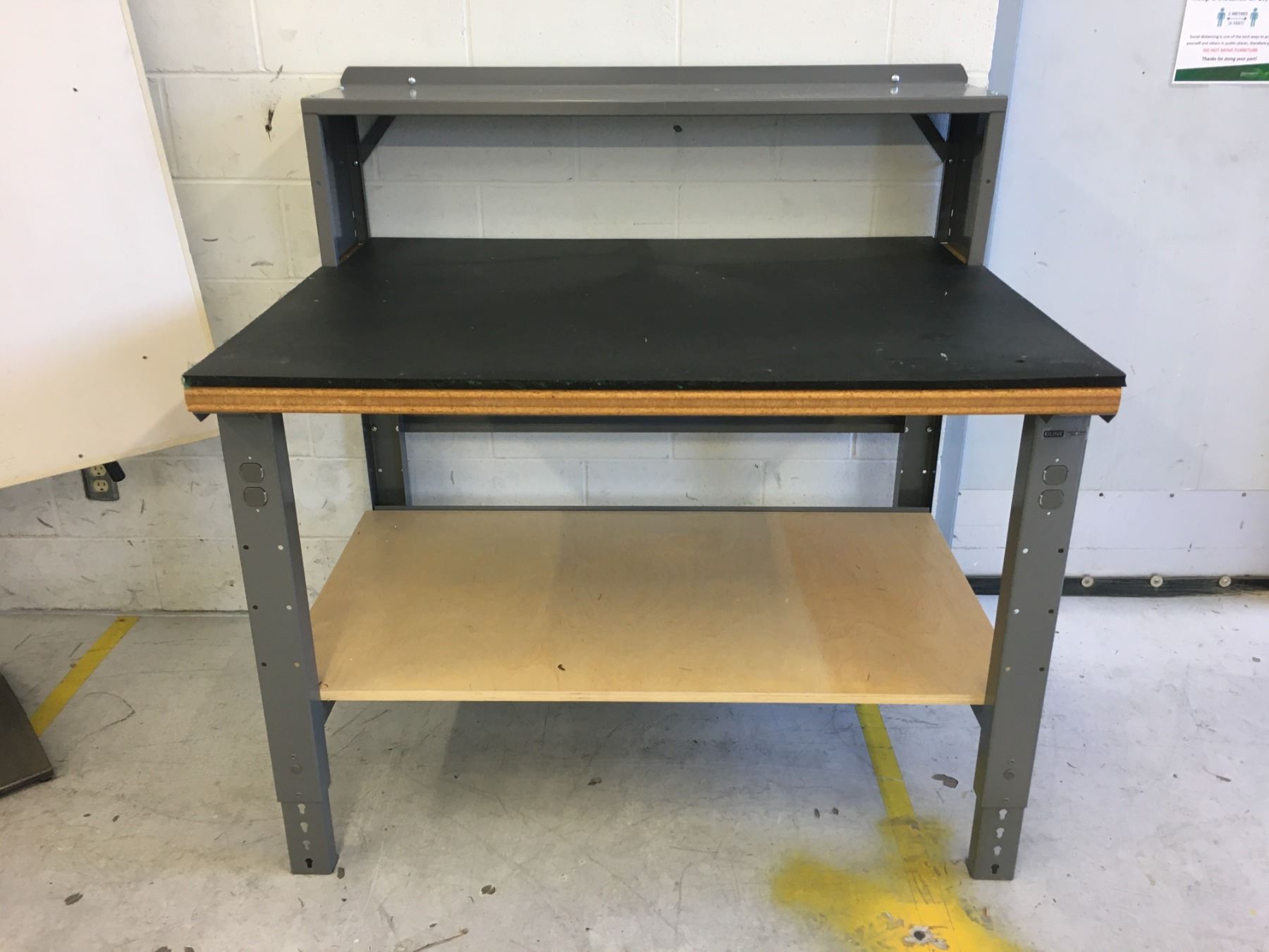 U-LINE ADJUSTABLE HEIGHT METAL WORK BENCH WITH THICK BLACK RUBBER MAT- APPROX.4FT X 3FT