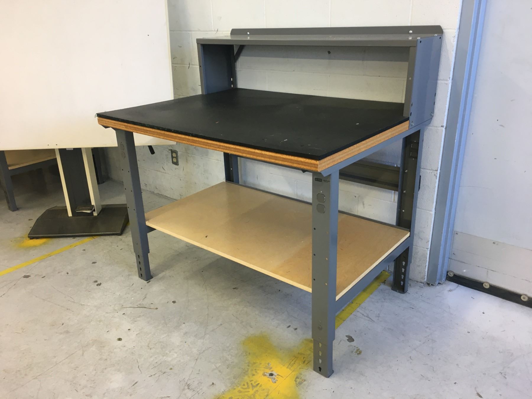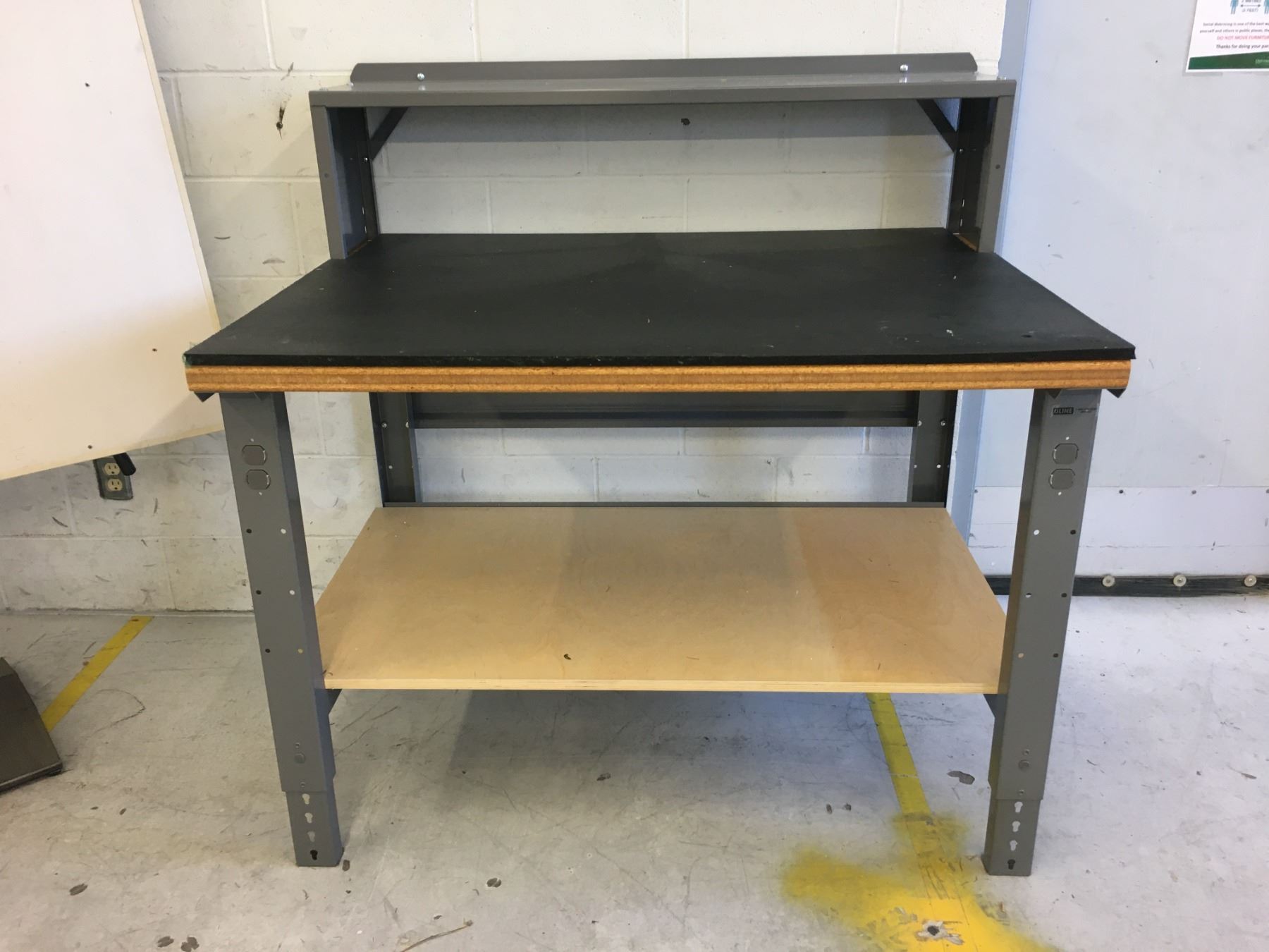 U-LINE ADJUSTABLE HEIGHT METAL WORK BENCH WITH THICK BLACK RUBBER MAT- APPROX.4FT X 3FT
