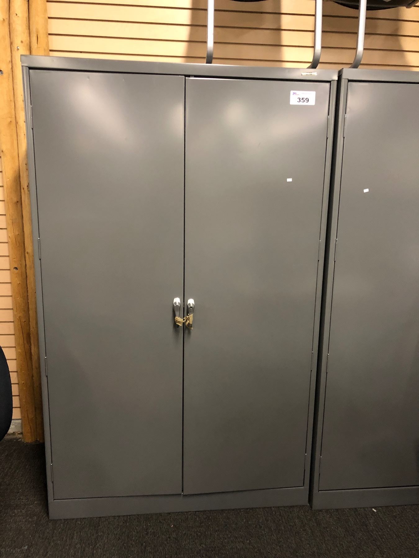 U-LINE GREY 6.5' ADJUSTABLE SHELF DOUBLE DOOR STORAGE UNIT, COMES WITH 4 SHELVES