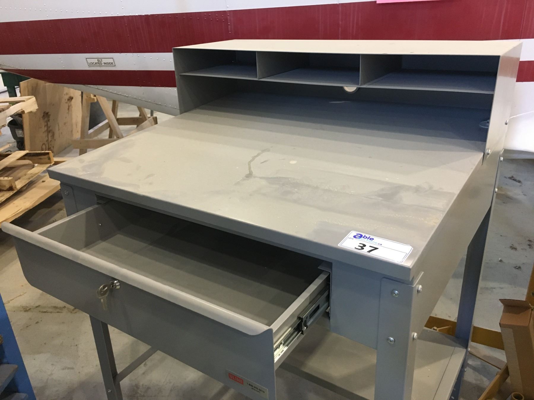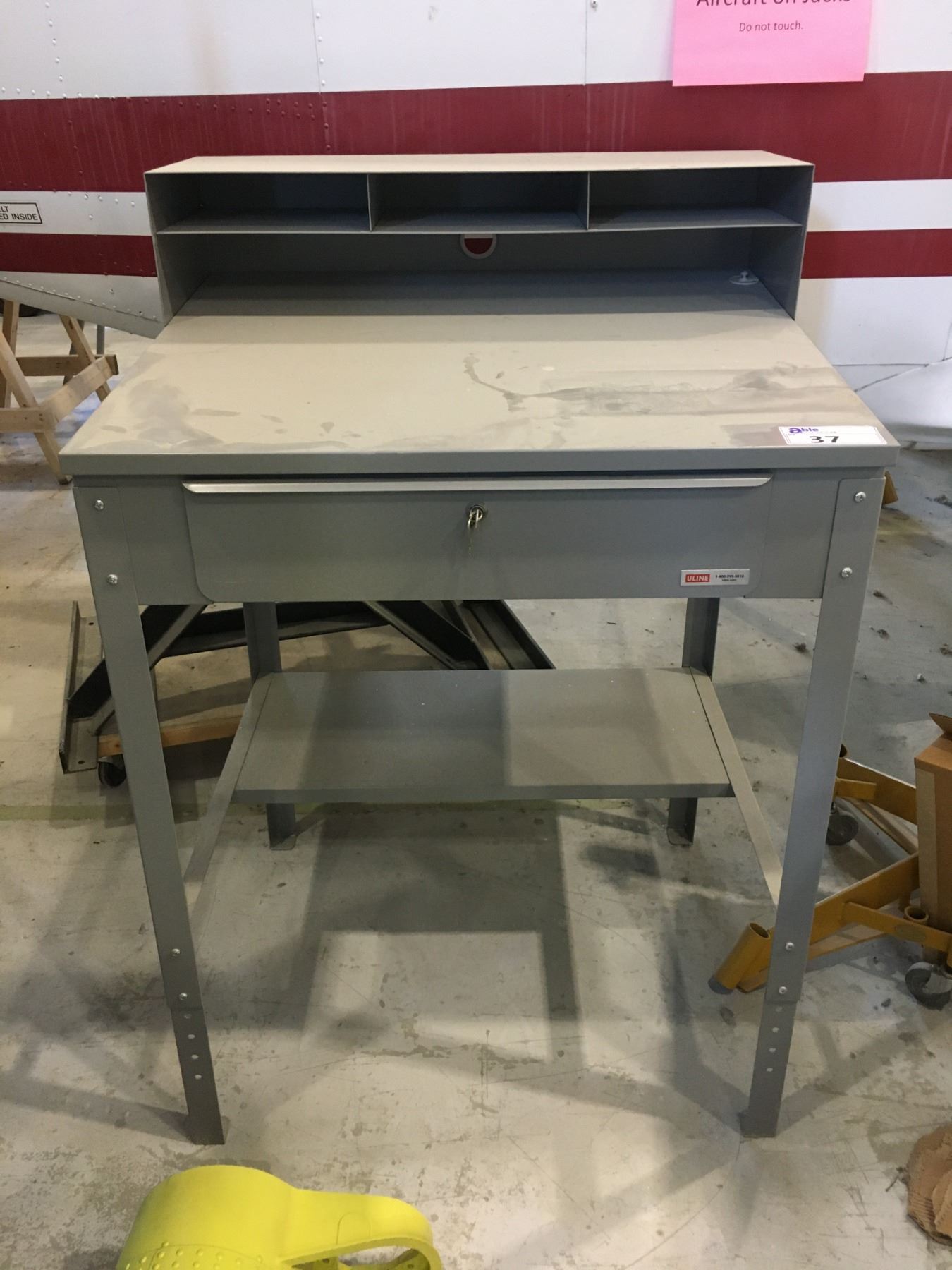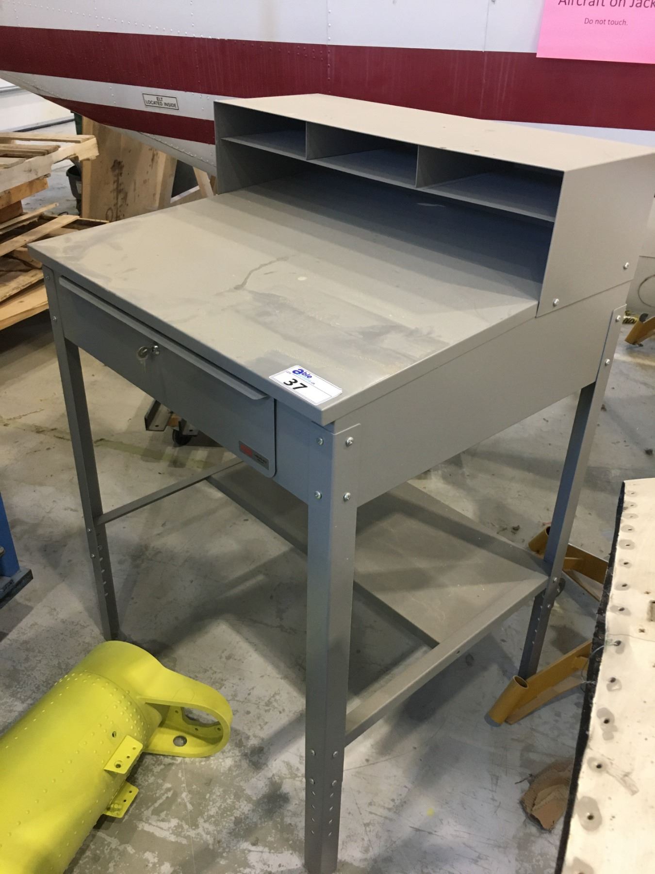 U-LINE METAL ADJUSTABLE HEIGHT INSTRUCTORS DESK/WORK BENCH-34 1/2" X 30 1/2" WITH KEYS