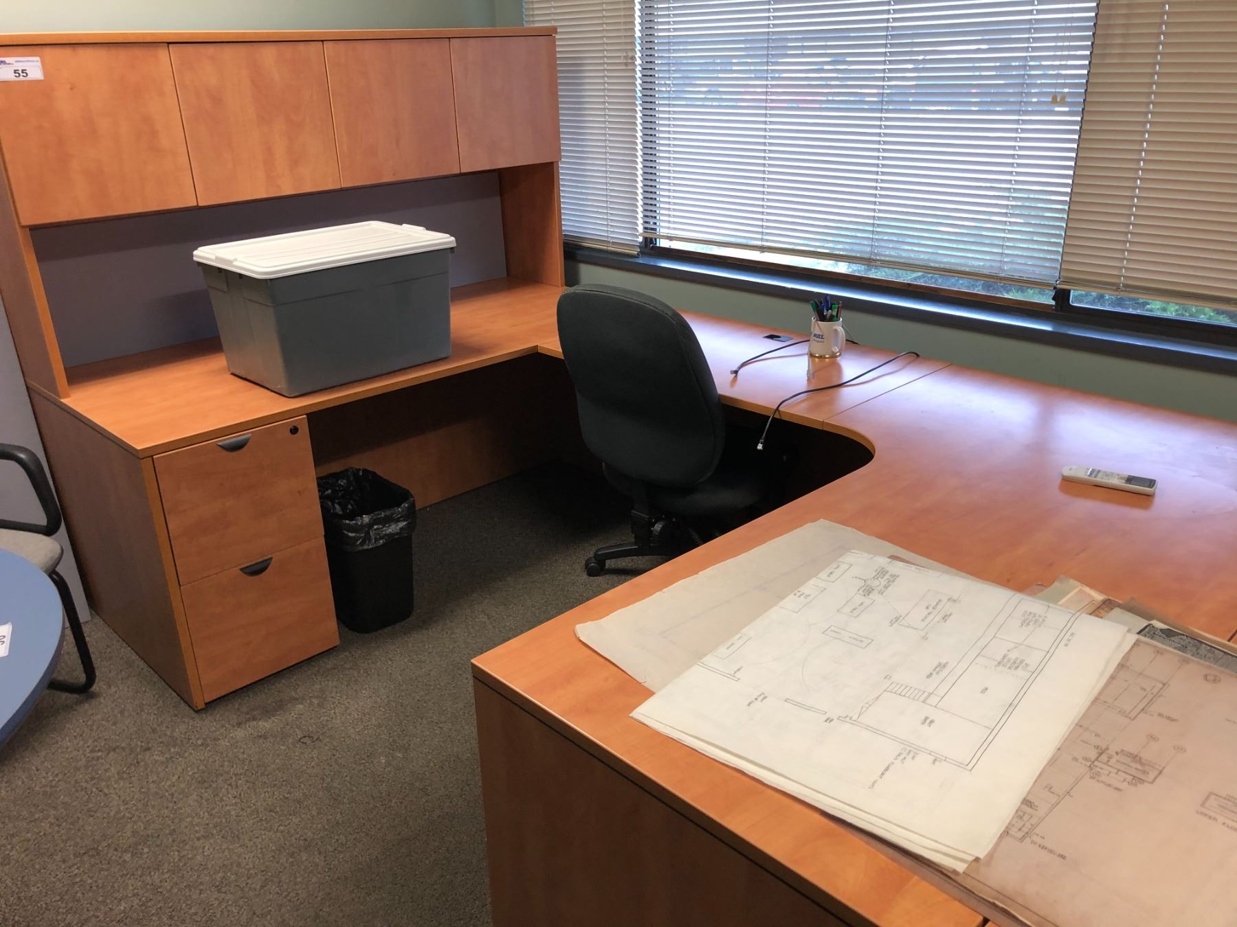 U-SHAPE 4 PIECE 5 DRAWER DESK WITH MATCHING 4 DOOR HUTCH (MONITORS NOT INCLUDED)