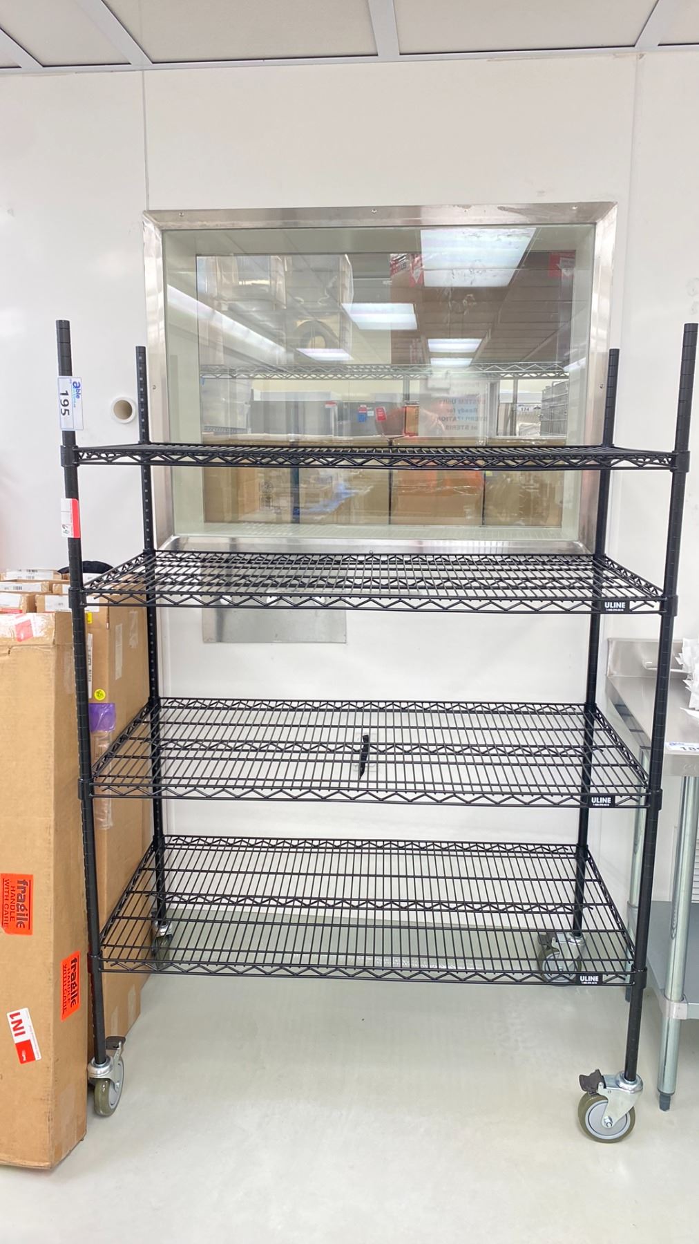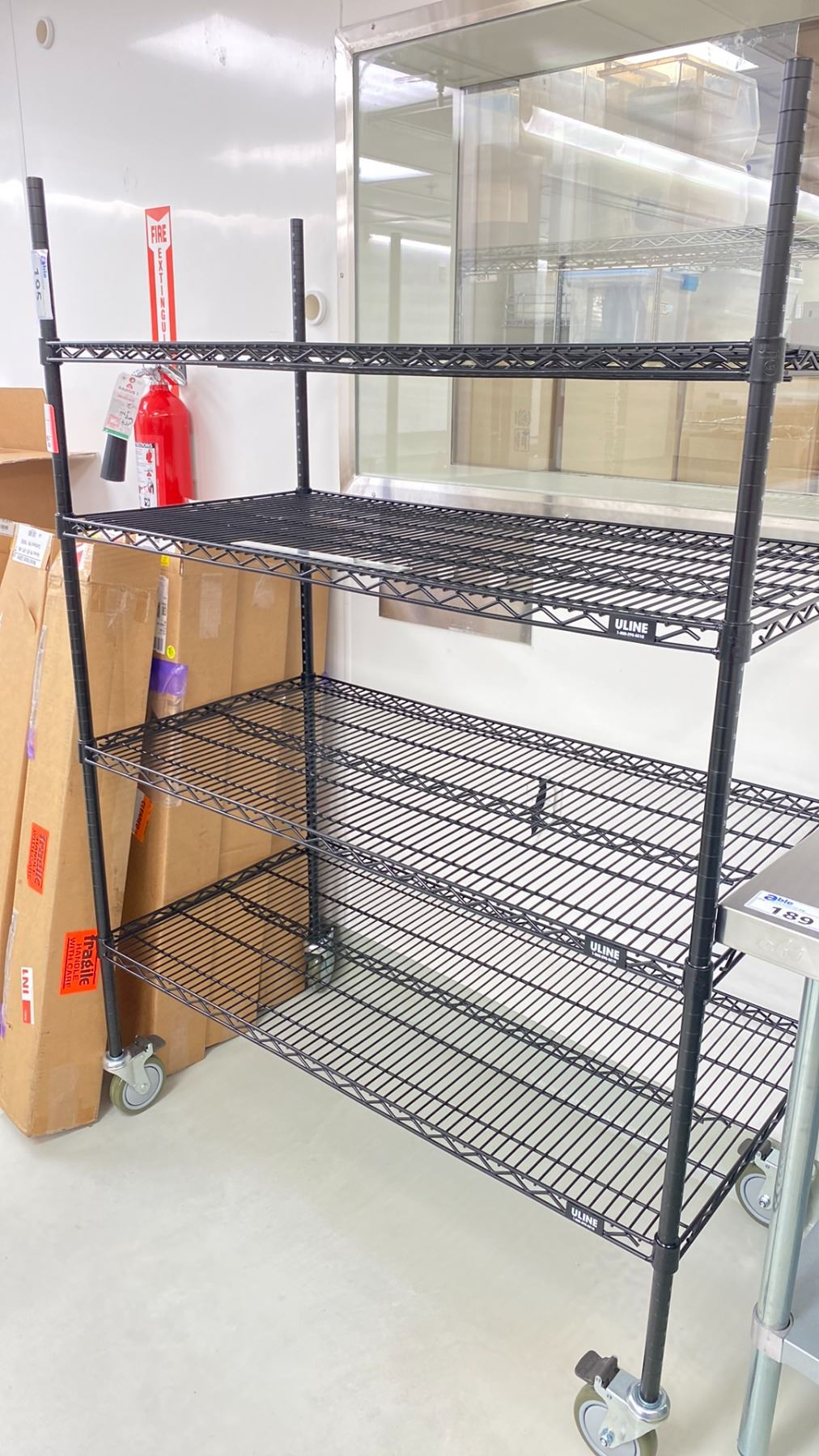 ULINE 4 TIER BLACK MOBILE METAL RACK