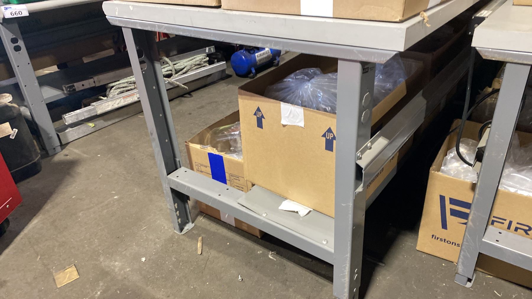 ULINE ADJUSTABLE HEIGHT GREY METAL WOOD TOP WORK TABLE APPROX 72"L X 36"W X 31"H