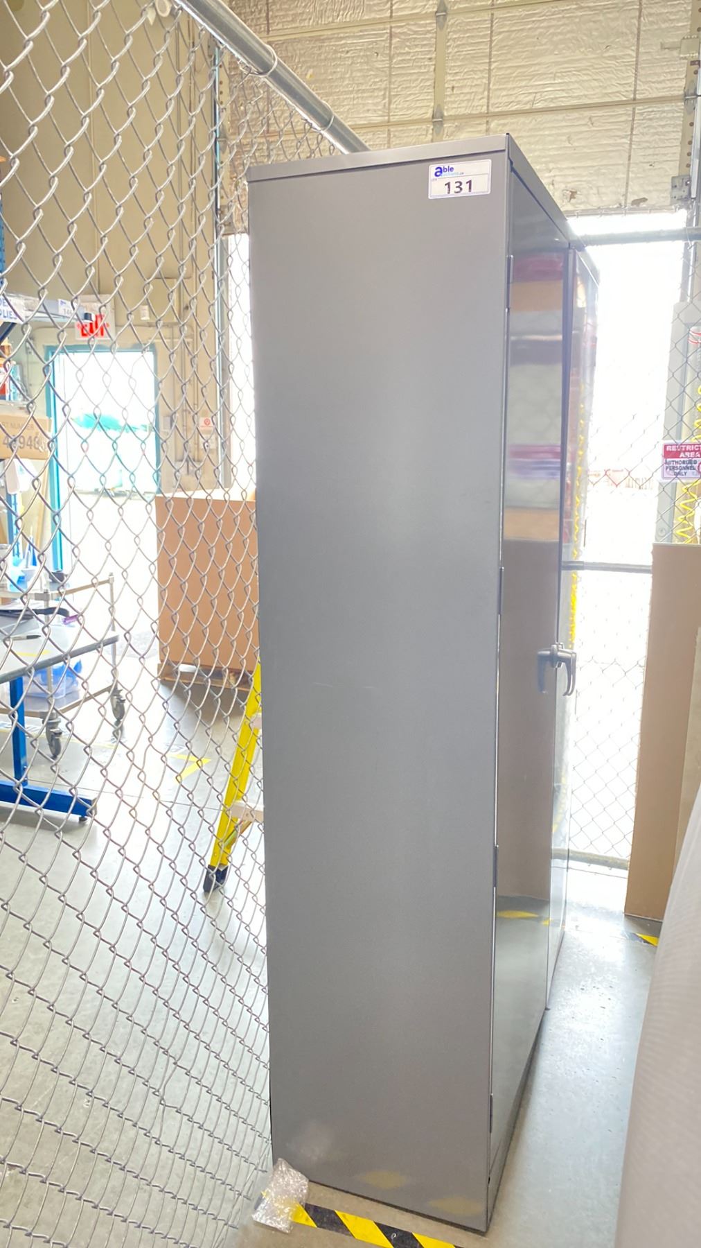 ULINE GREY METAL 2 DOOR STORAGE CABINET APPROX 79 X 48 X 18"