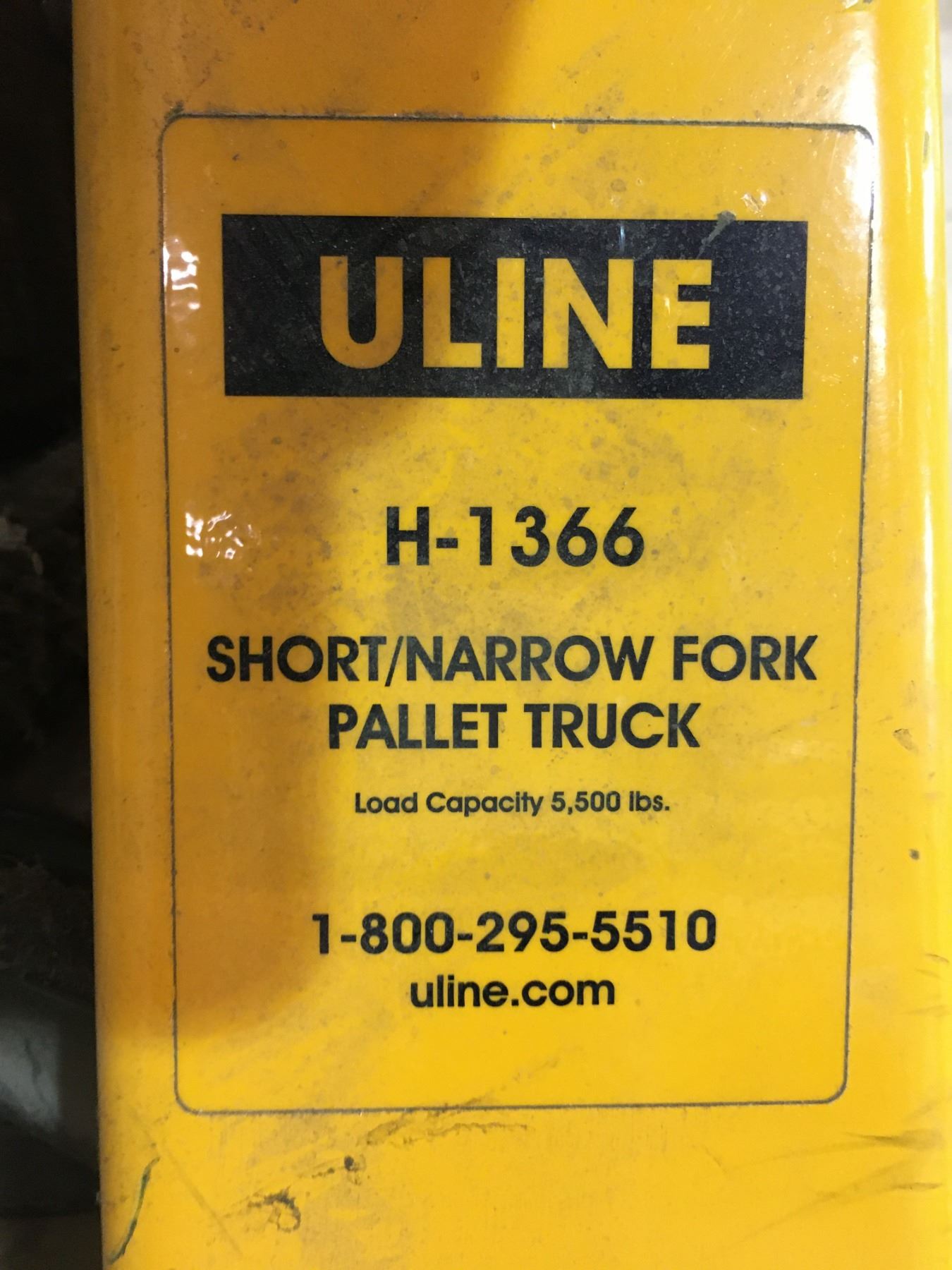 ULINE H-1366 SHORT/NARROW FORK PALLET JACK (5,500LB CAPACITY)