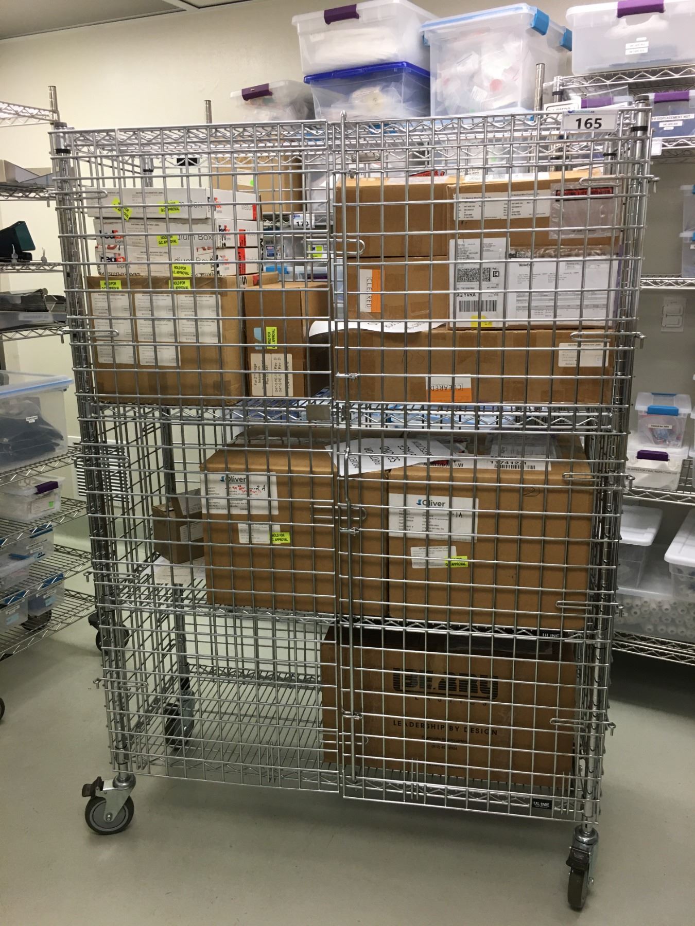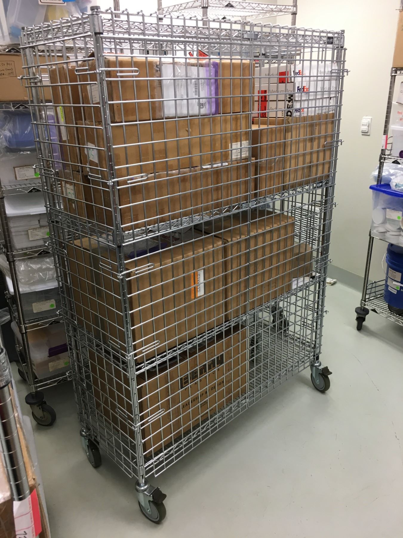 ULINE ROLLING METRO RACK WITH CAGE (CONTENTS NOT INCLUDED)