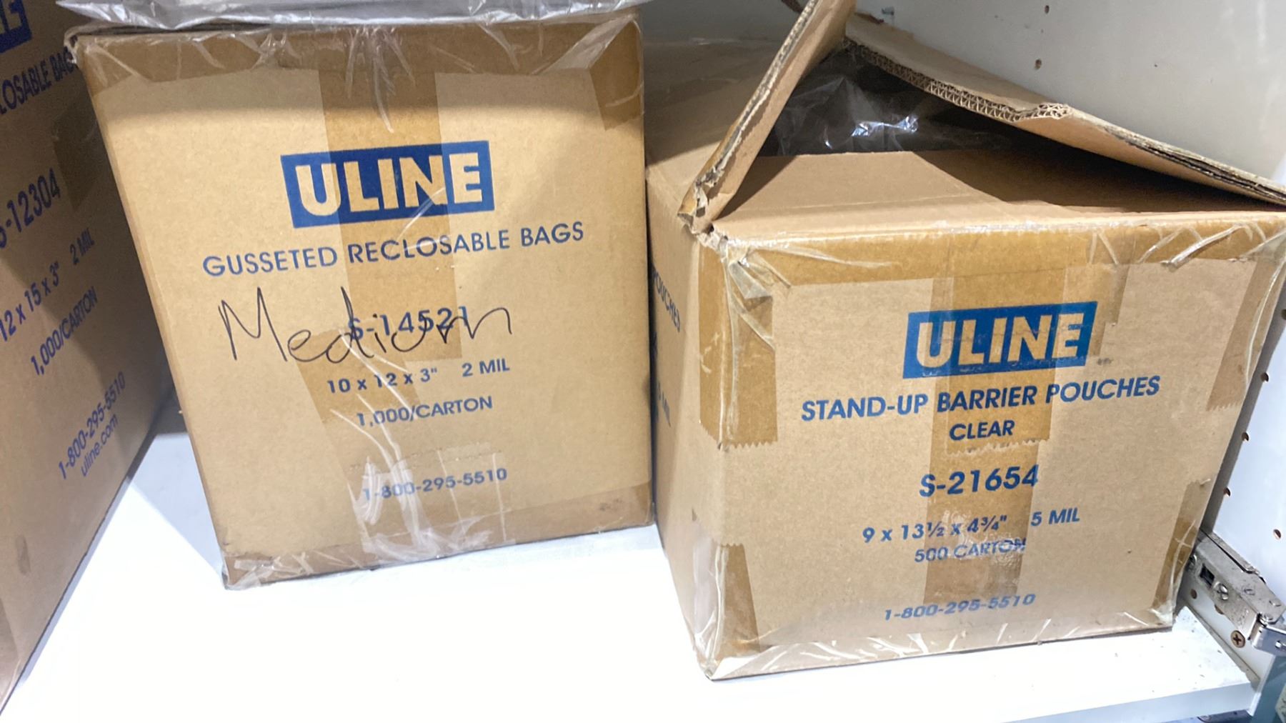 ULINE STAND-UP BARRIER POUCHES & LARGE + MEDIUM GUSSETED RECLOSEABLE BAGS - APPROX. 6 BOXES