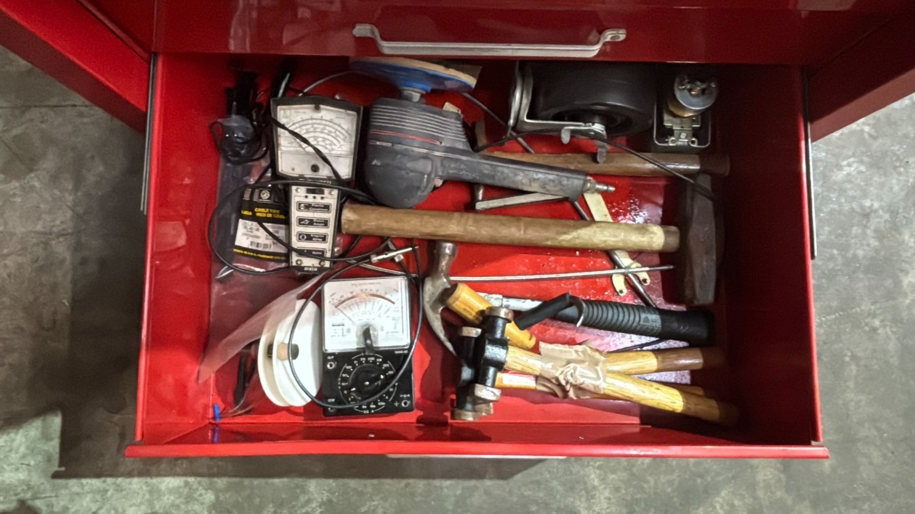 ULTRA PRO 2-PC 22 DRAWER PORTABLE TOOL BOX WITH ASSORTED TOOL CONTENTS INCLUDING; MULTIMETERS, SCREWDRIVERS, HEX WRENCHES, AIR TOOLS, WIRE STRIPPERS, MALLETS & MORE WITH KEYS 27" X 19" X 61"H
