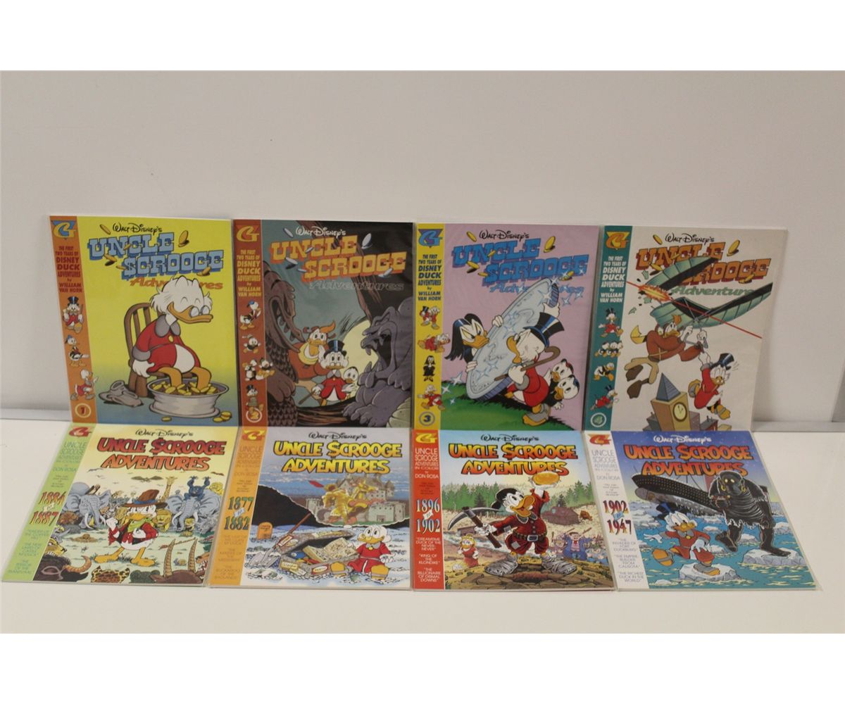 UNCLE SCROOGE ADVENTURES TRADES BY DON ROSA & WILLIAM VAN HORN (1998) INCLUDES #1-4 (WV HORN) & 1884-1947 (4 ISSUES) BY ROSA. 8 BEAUTIFUL BOOKS, HIGH GRADE, LIKE NEW