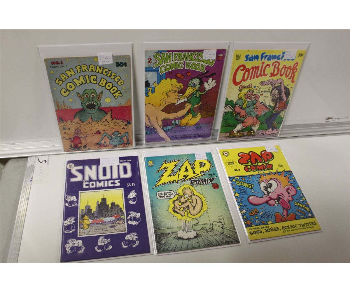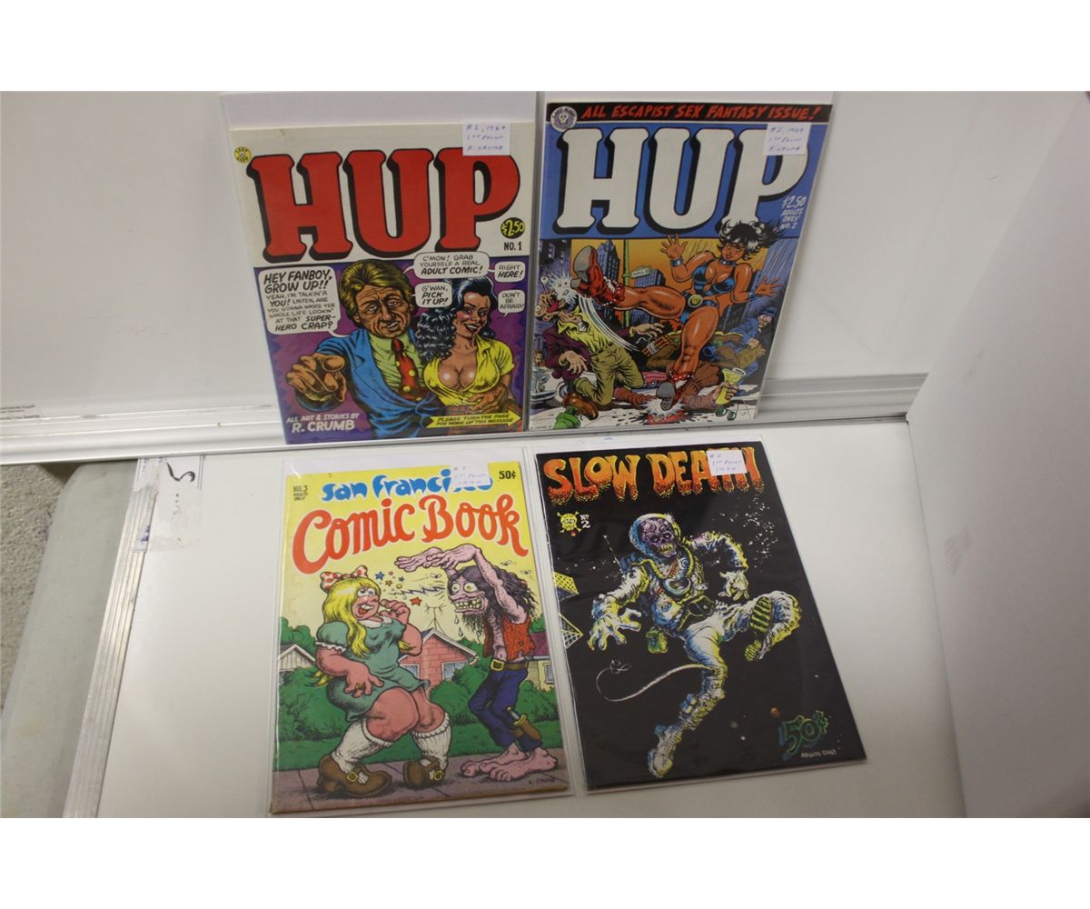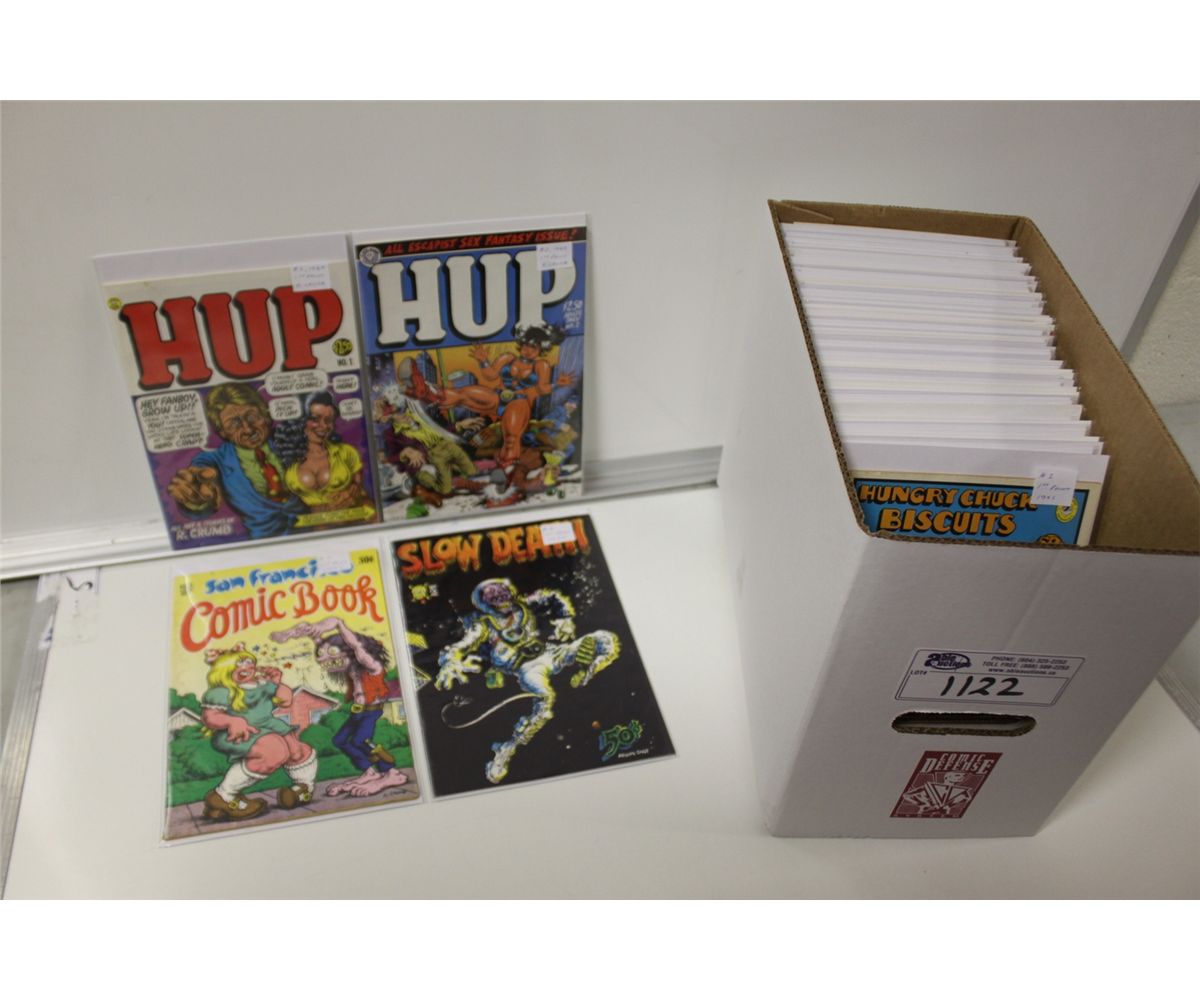 UNDER GROUND COMIX SHORT BOX.  MOSTLY SILVER & BRONZE OBSCURE & LEWID TITLES.  MOST ARE 1ST PRINTS & LOW PRINT.  MIXED GRADES, MANY SHARP.  FOGEL'S COMIX TOP END GUIDE VALUE OF OVER $1,500.  18 YEARS +
