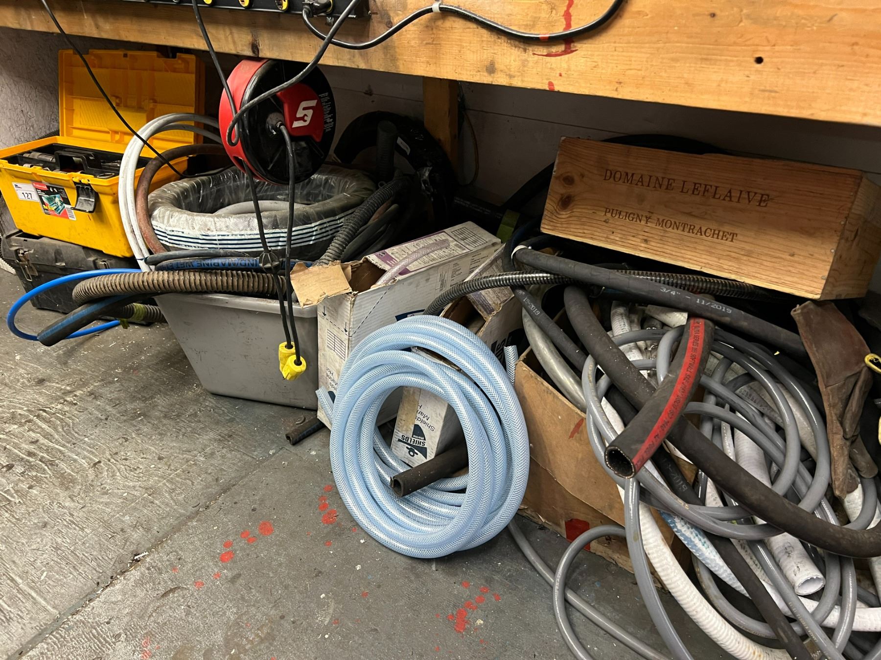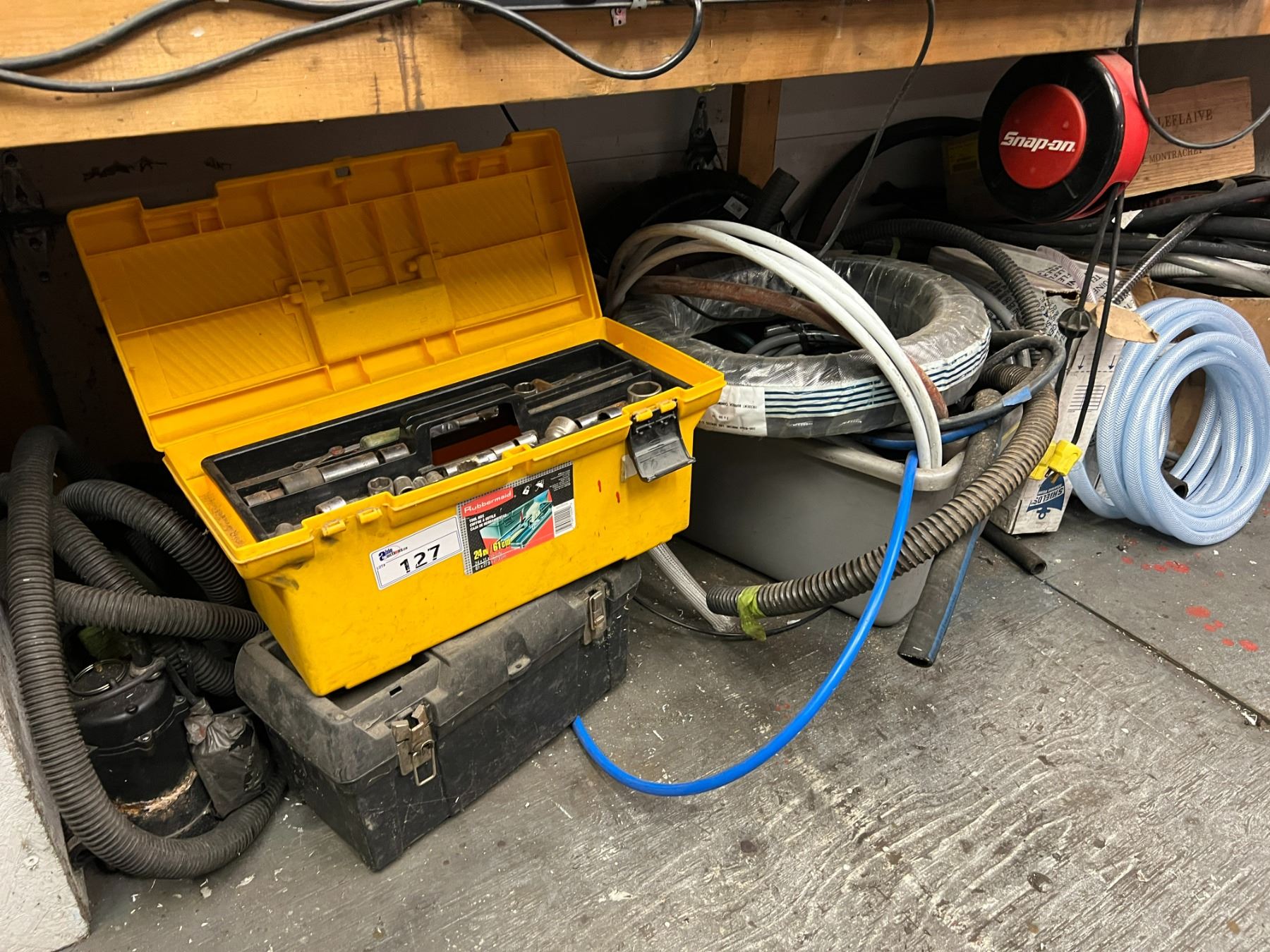 UNDER TABLE LARGE GROUP OF TOOLS, HARDWARE AND MISCELLANEOUS ITEMS