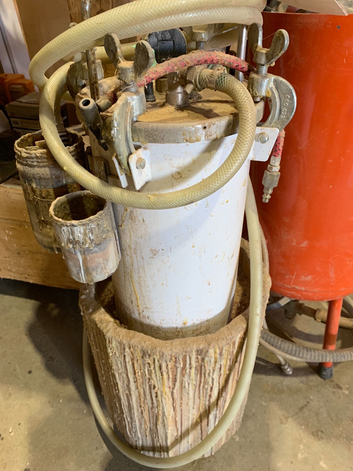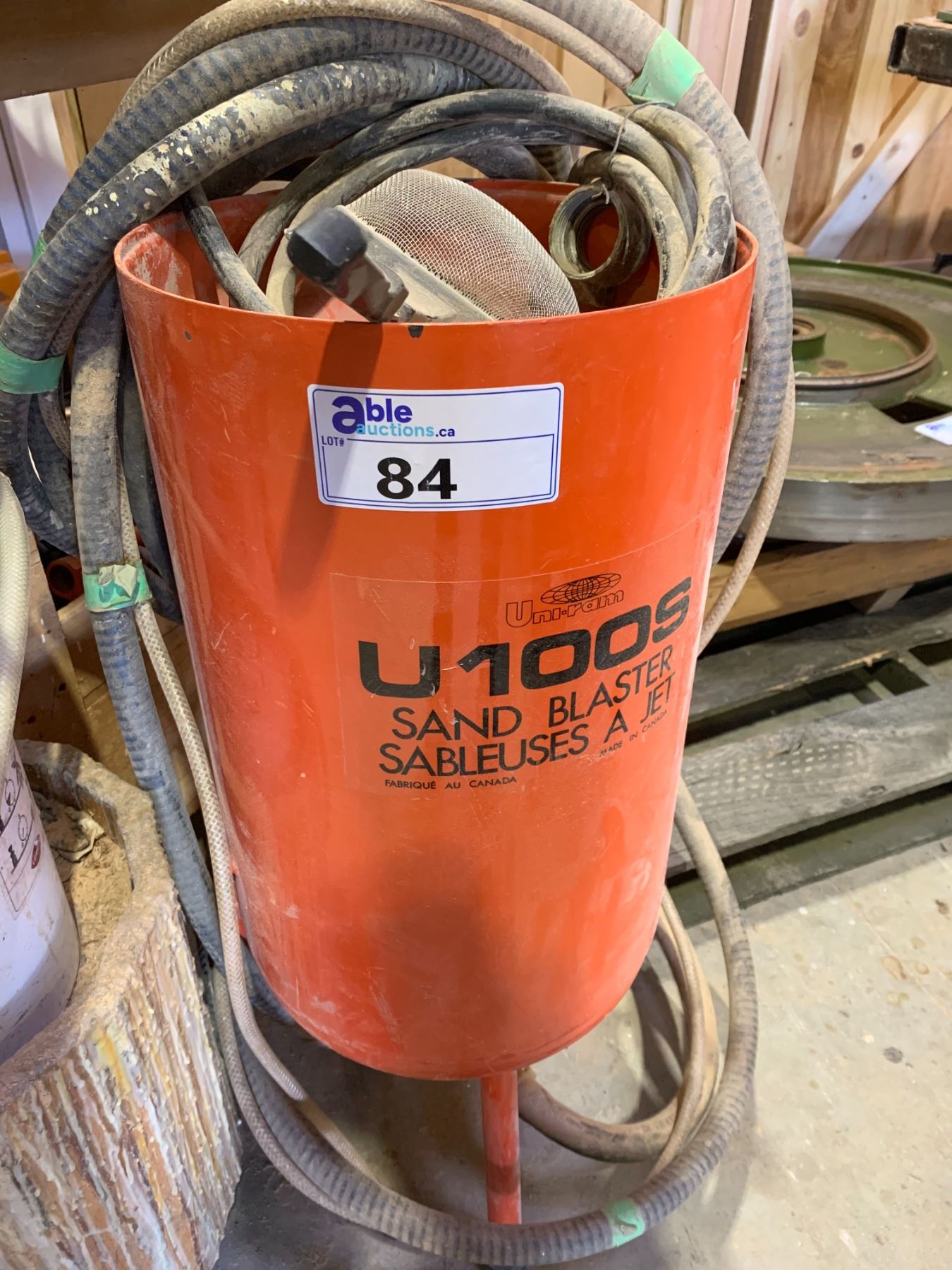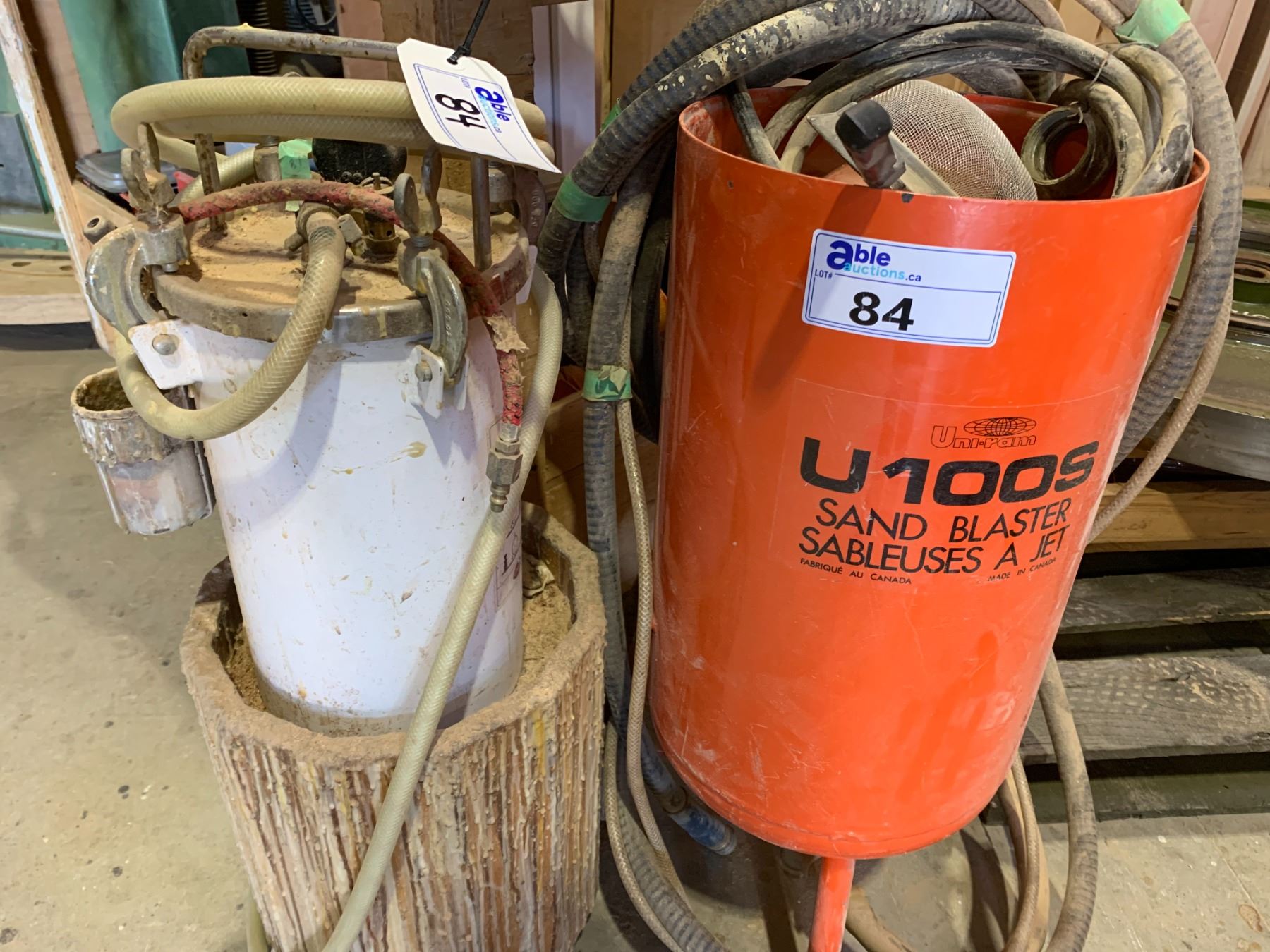 UNI-RAM (U1000S) MOBILE SANDBLASTER TANK WITH HOSES & A COMMERCIAL SPRAY PAINT POT
