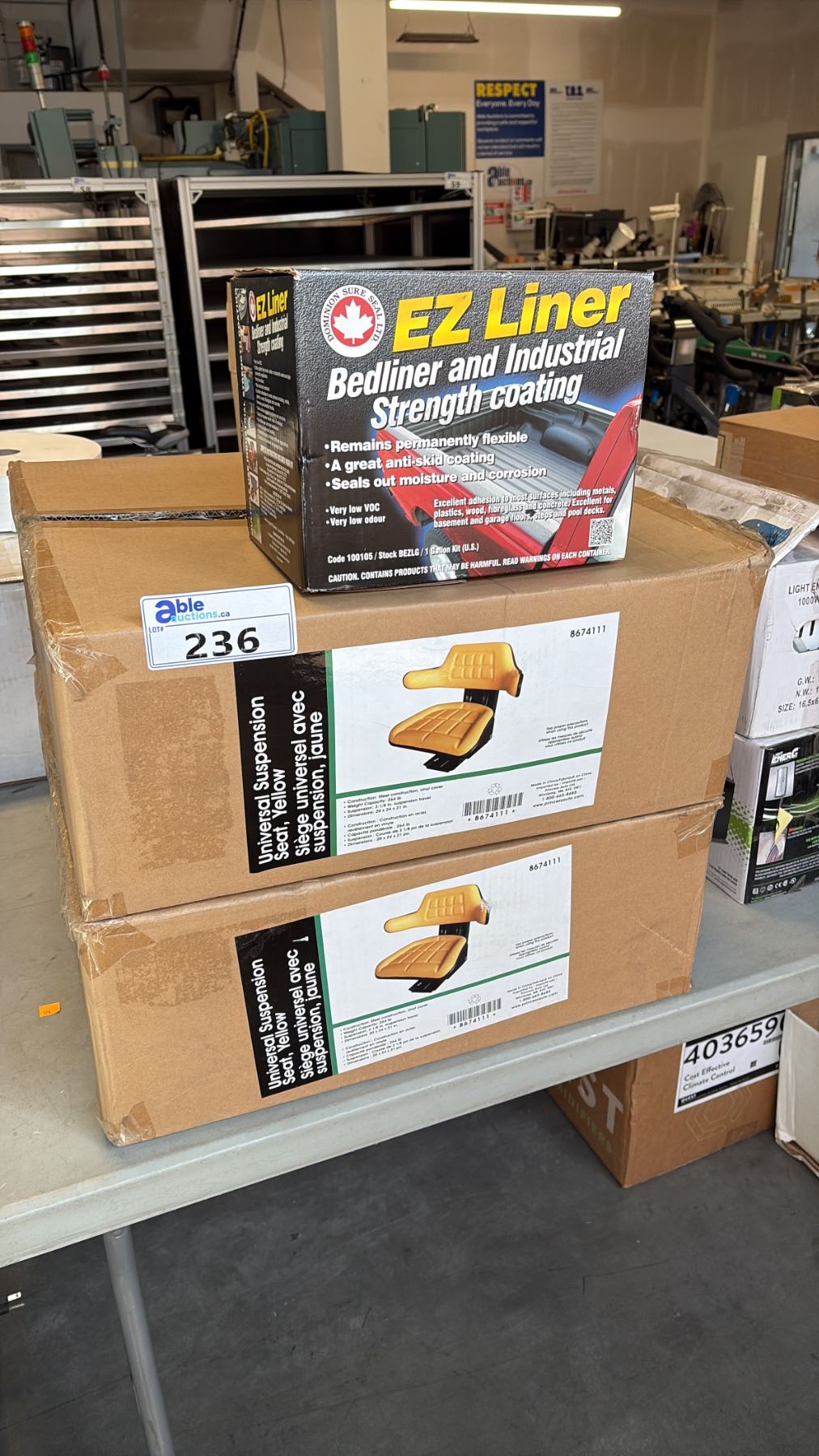 UNIVERSAL YELLOW TRACTOR SEATS W/ MECHANICAL SUSPENSION SYSTEM AND EZ LINER TRUCK BEDLINER