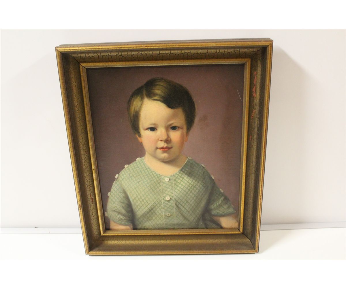 UNSIGNED, OIL ON CANVAS, PORTRAIT OF A CHILD. "P. PEEL" WRITTEN ON REVERSE 17" X 14"