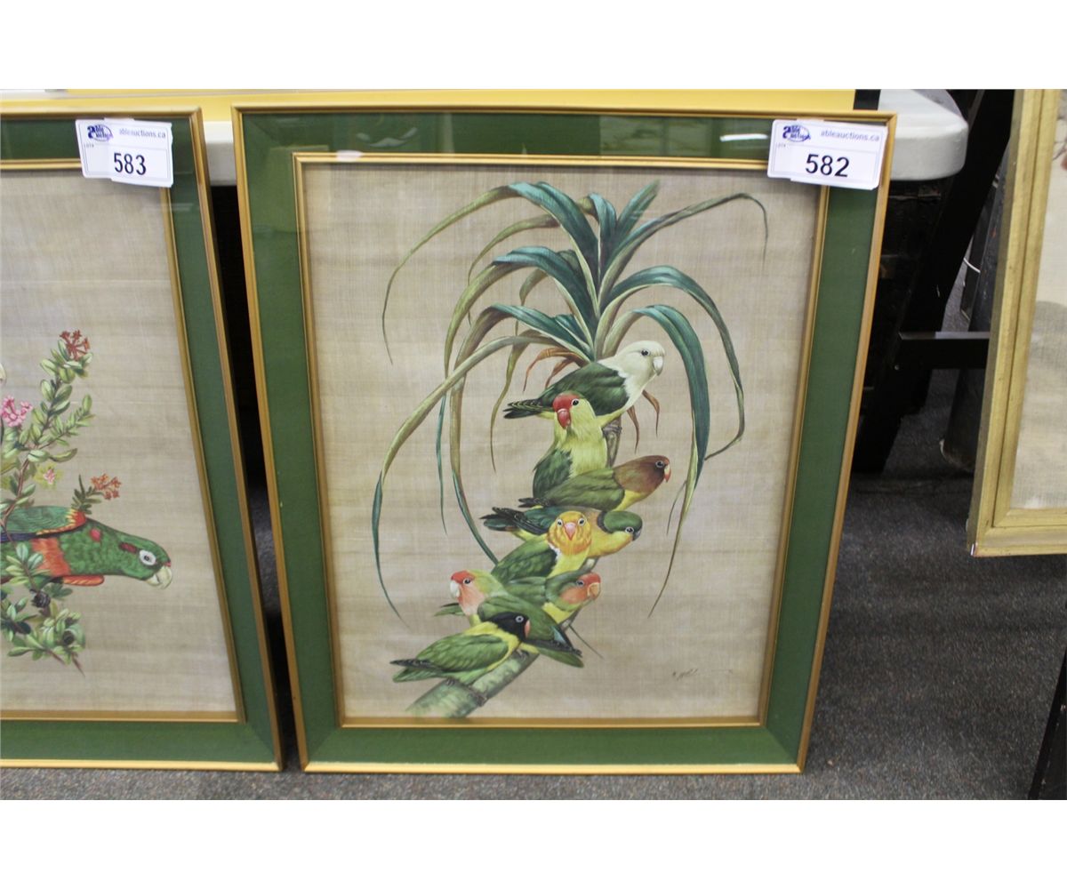 "UNTITLED- BIRDS" ACRYLIC ON SILK 19" X 26" SIGNED LOWER RIGHT