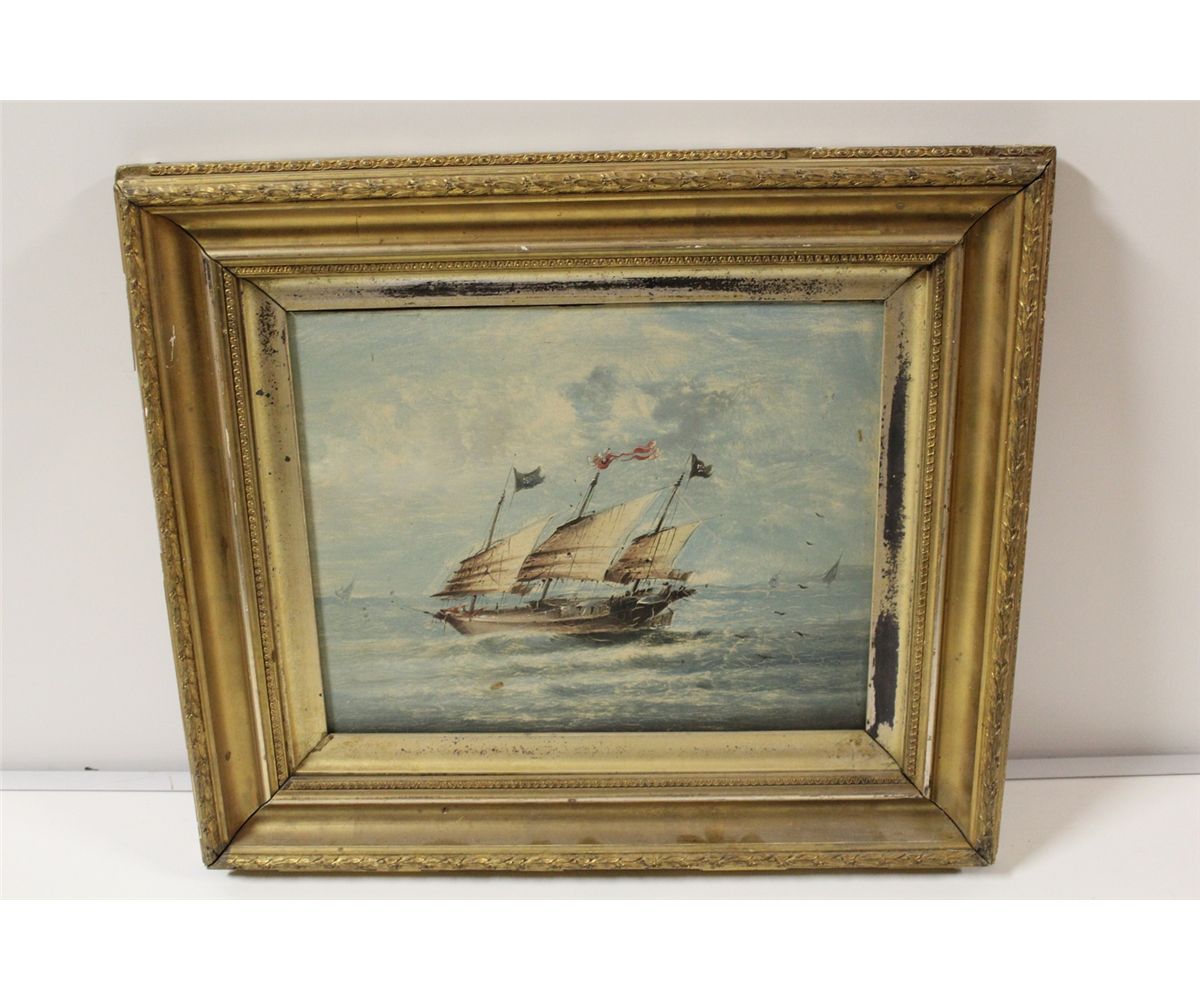UNTITLED, OIL ON BOARD, CIRCA 1900 12" X 15" SHIP AT SEA
