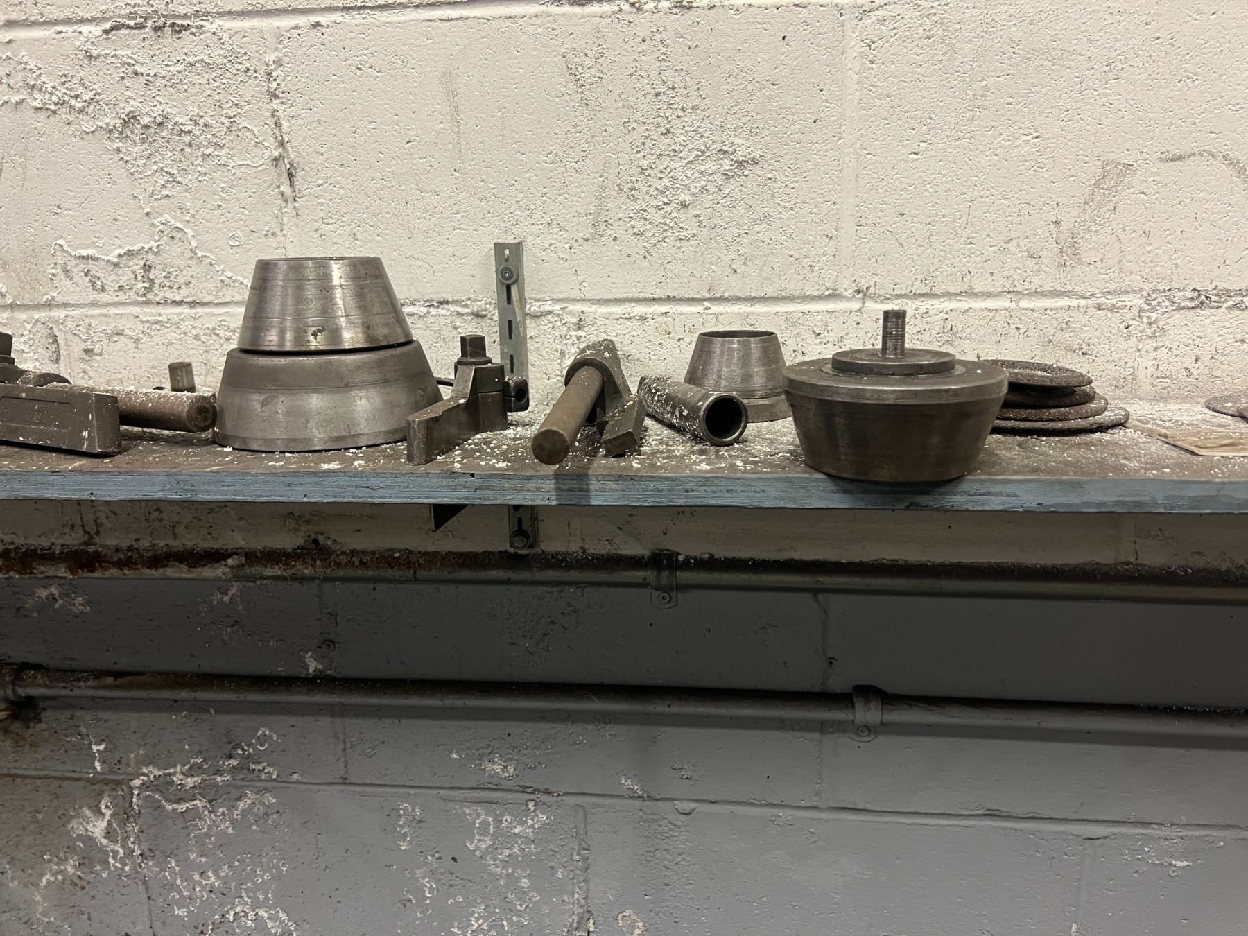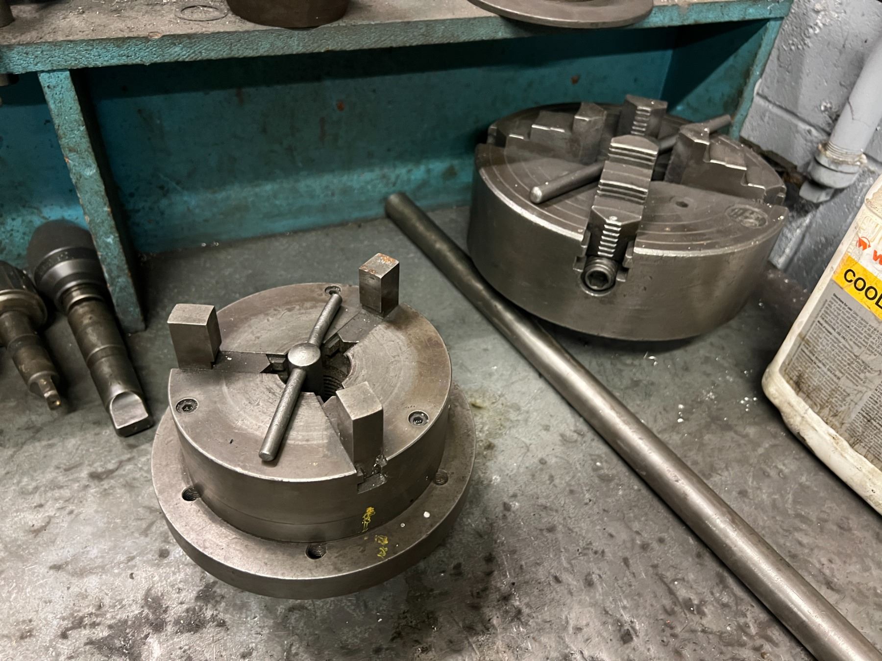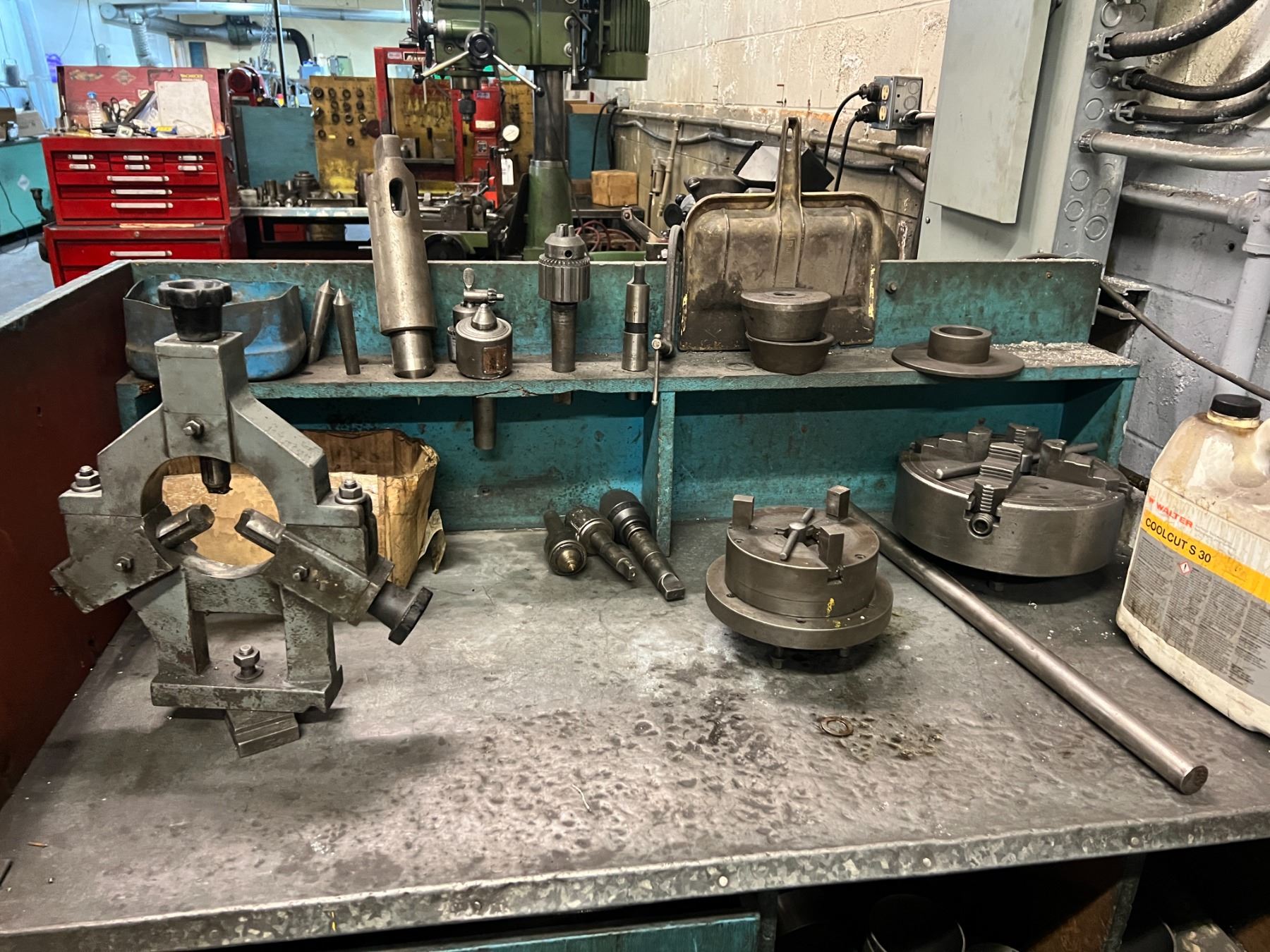 URPE L180 SINGLE DIRECTIONAL LATHE. 3HP 3 PHASE. COMES WITH 2X3 JAW, 4 JAW CHUCKS, STEADIES, VARIOUS CENTERS, ACCESSORIES & SMALL WORK BENCH
