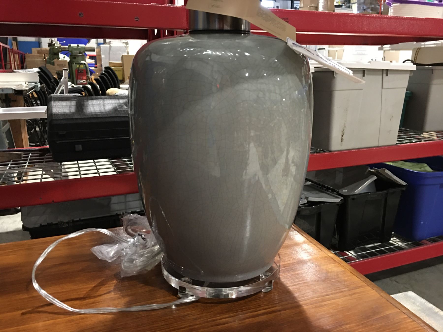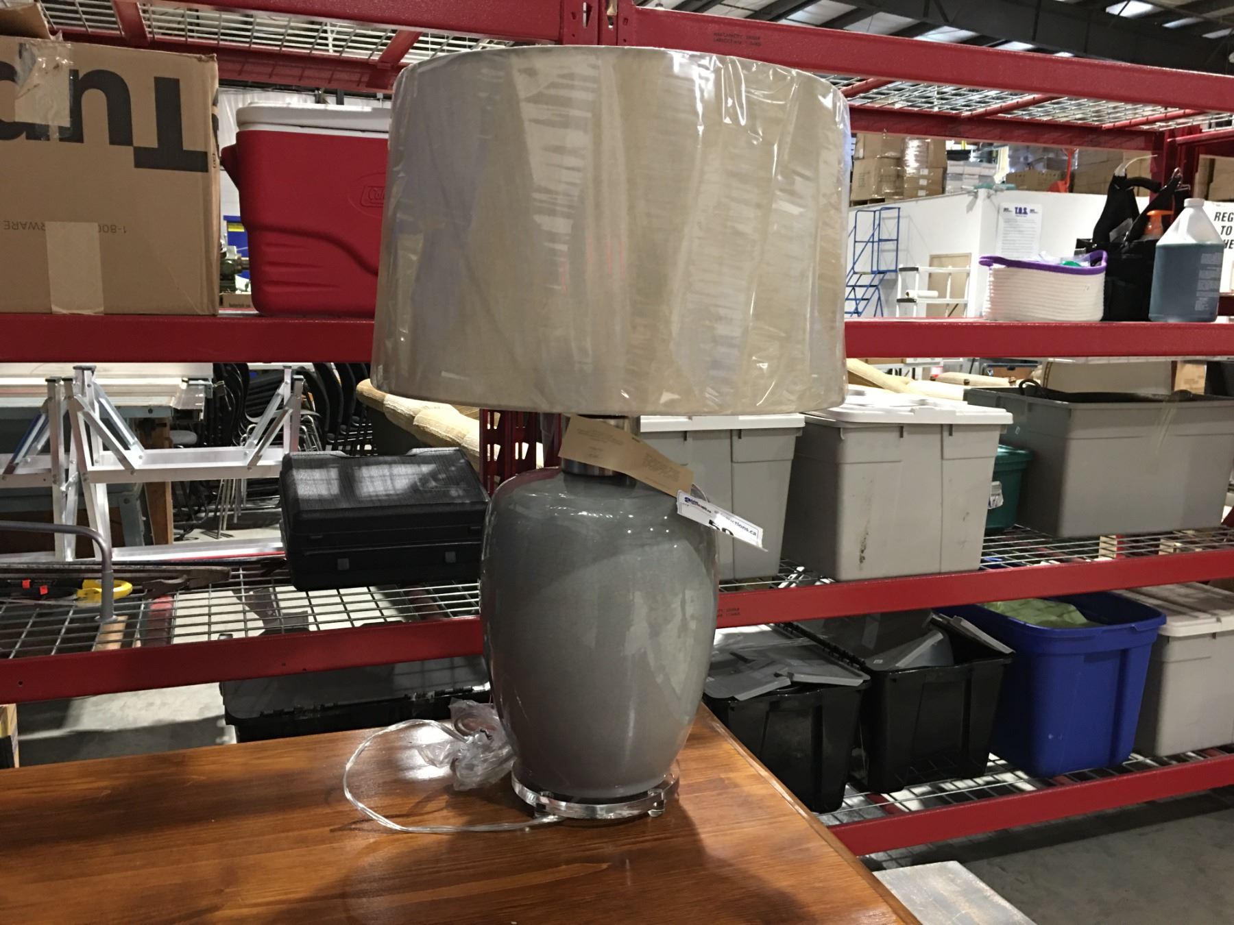 UTTERMOST LIGHTING TABLE LAMP WITH SHADE ON CLEAR ACRYLIC BASE (30.25"H X 19.5"W) -FROM HAND LEAF FINISHES TO HAND SEWN SHADES, EVERY UTTERMOST LAMP IS DESIGNED TO LAST A LIFETIME - B