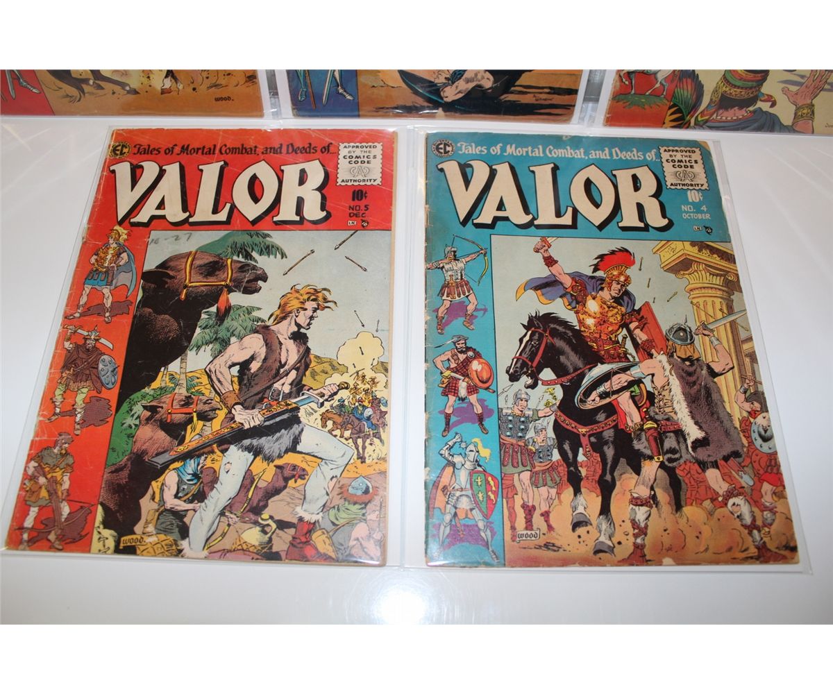 VALOR #1-5 (1955) COMPLETE SET, ALL 5 ISSUES OF THIS EC COMICS TITLE! MIXED GRADES. #1 IS A VERY SOLID MID GRADE, NICE & TIGHT!