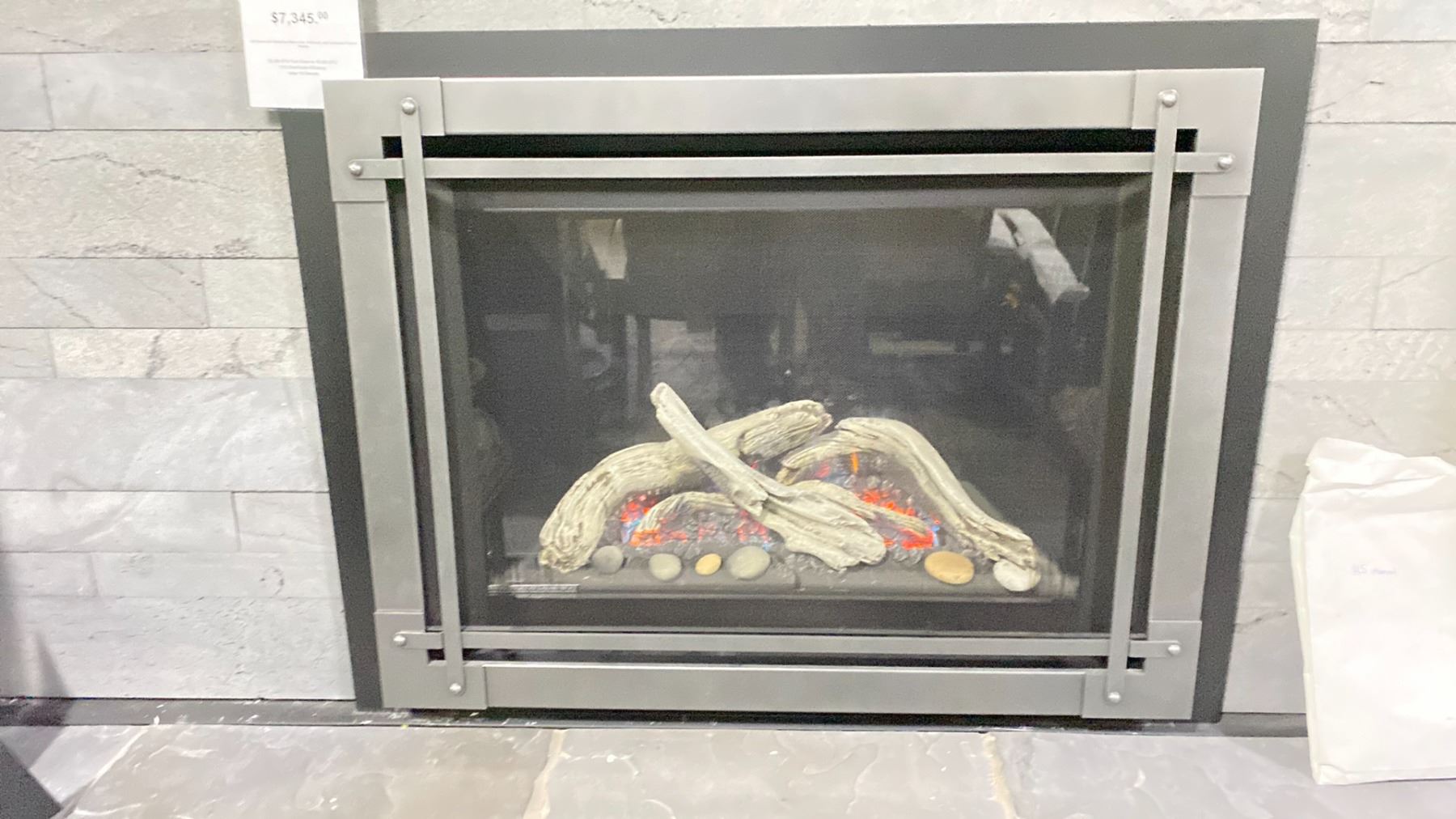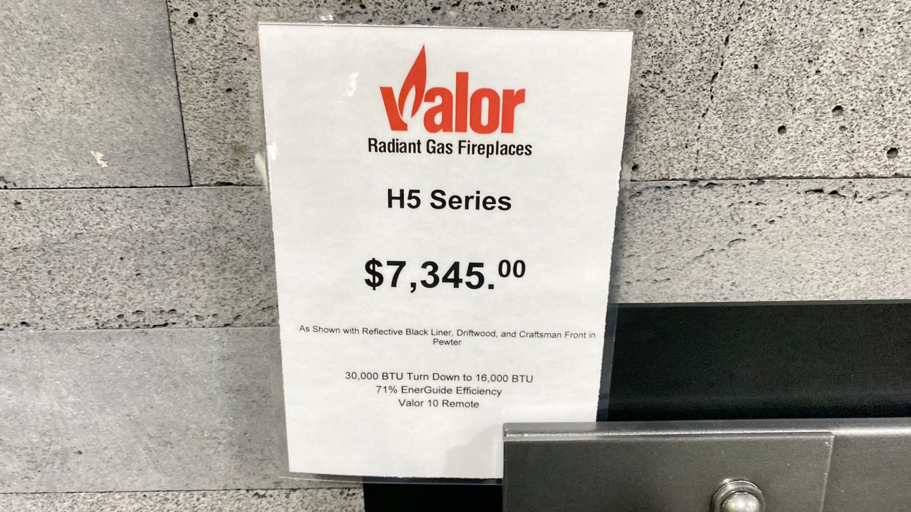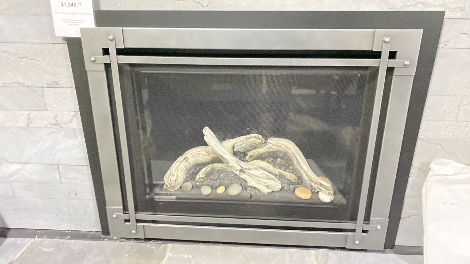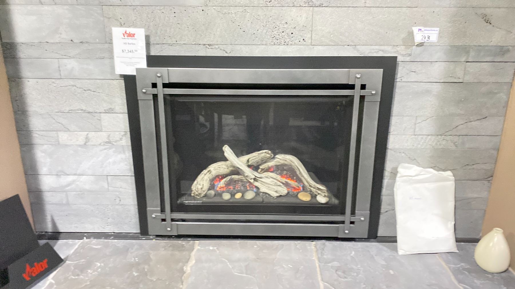 VALOR H5 SERIES WITH REFLECTIVE BLACK LINER, DRIFTWOOD AND CRAFTSMAN FRONT IN PEWTER. 30,000 BTU TURN DOWN TO 16,000 BTU, 71% ENERGUIDE EFFICIENCY WITH REMOTE. RETAILS $7345