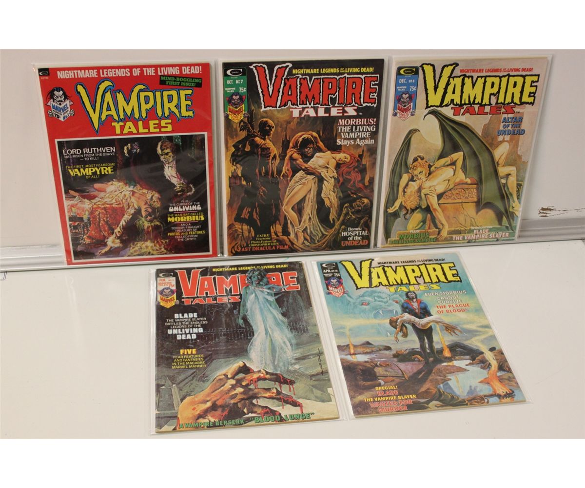 VAMPIRE TALES EARLY BRONZE RUN (MARVEL) #1,7,8,9, 10 (1973-75) 1ST MORBIES, SOLO TITLE. HIGH MID GRADE AVERAGE, NICE, SHARP COPIES