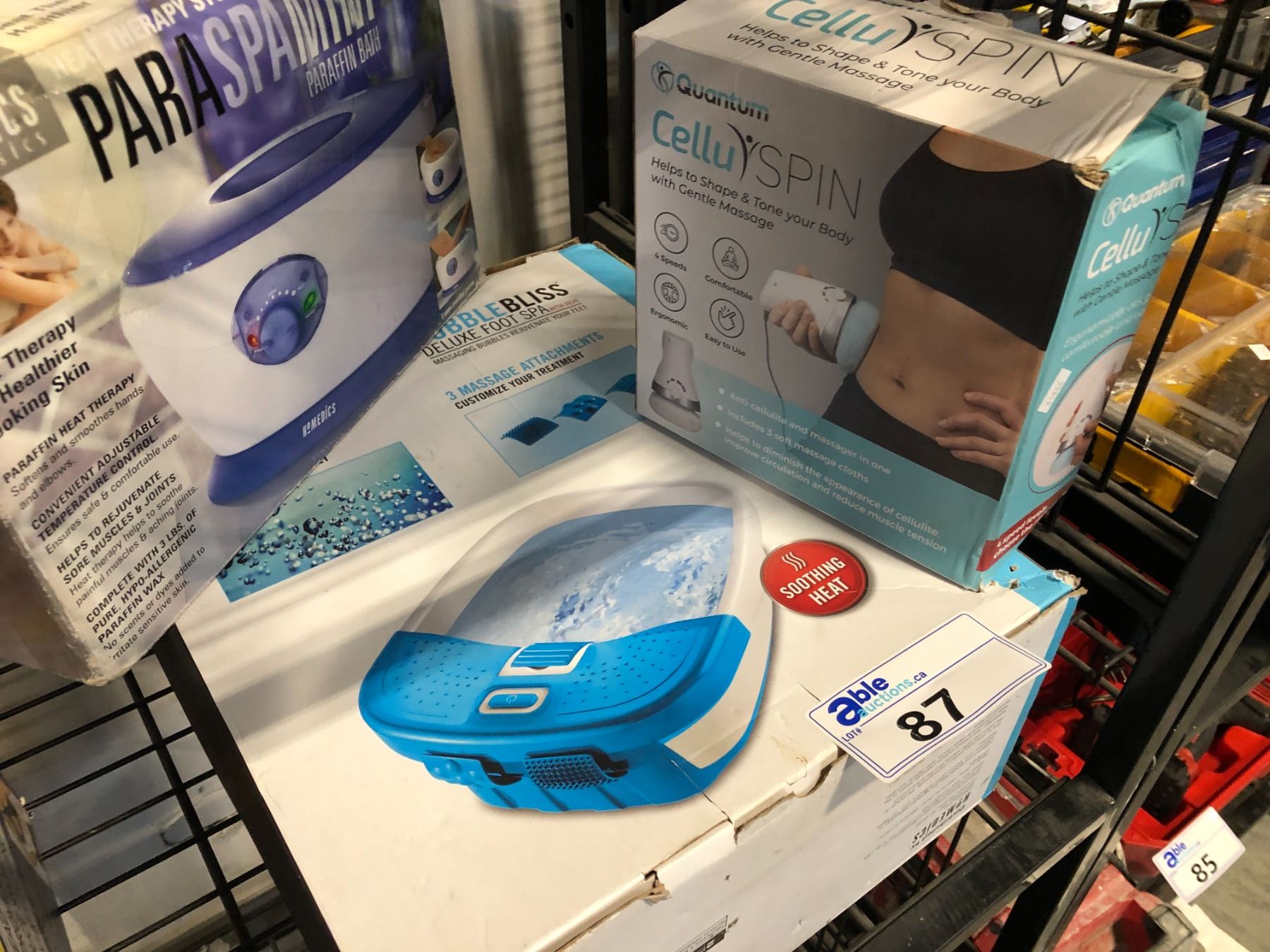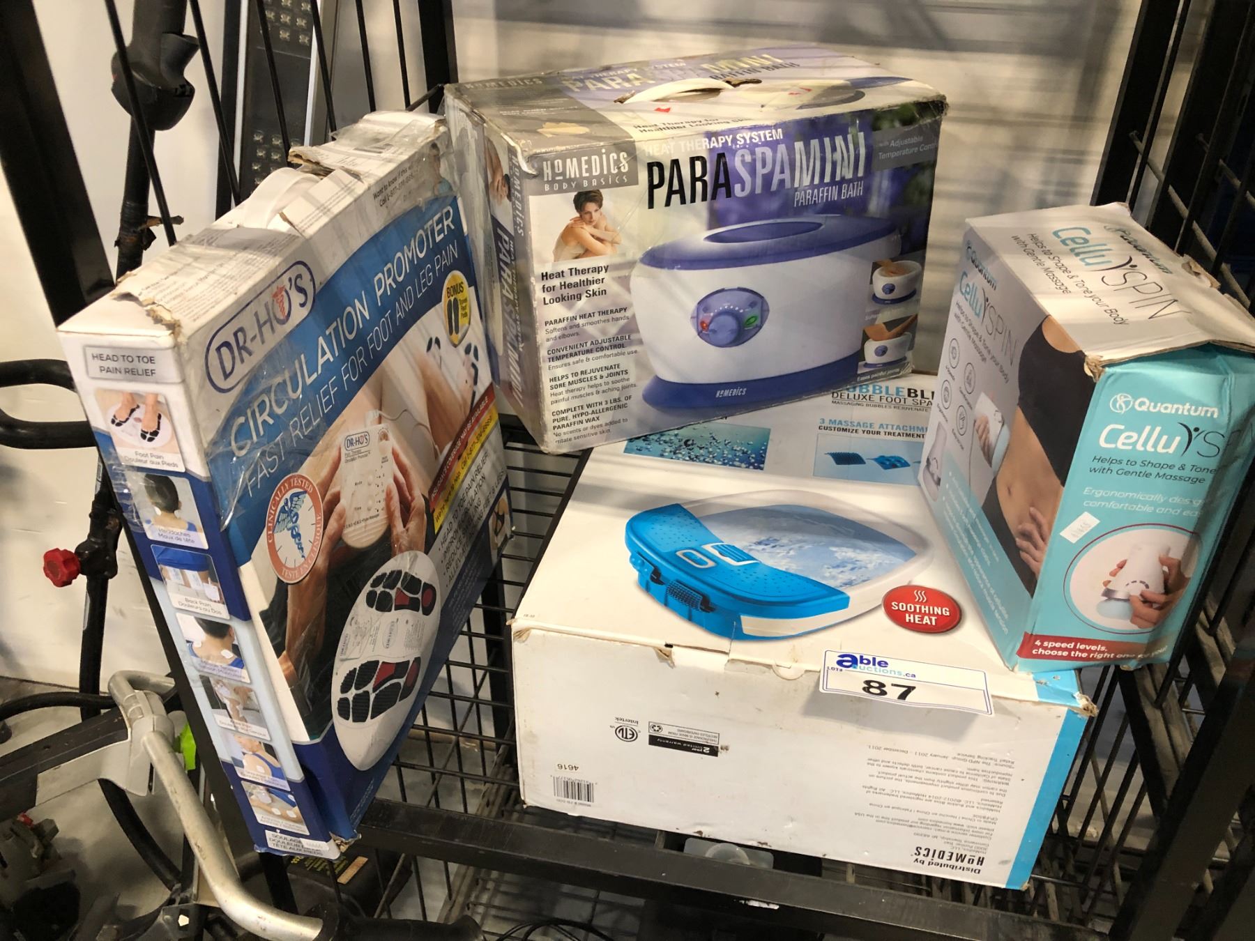 VARIOUS SPA PRODUCTS INCLUDING FOOT SPA, PARAFFIN BATH, CELLUSPIN AND DR HO'S CIRCULATION PROMOTER