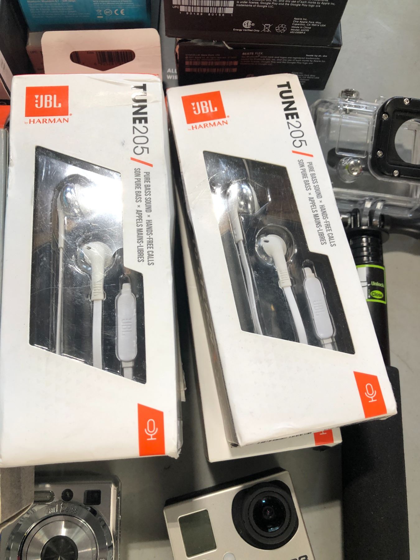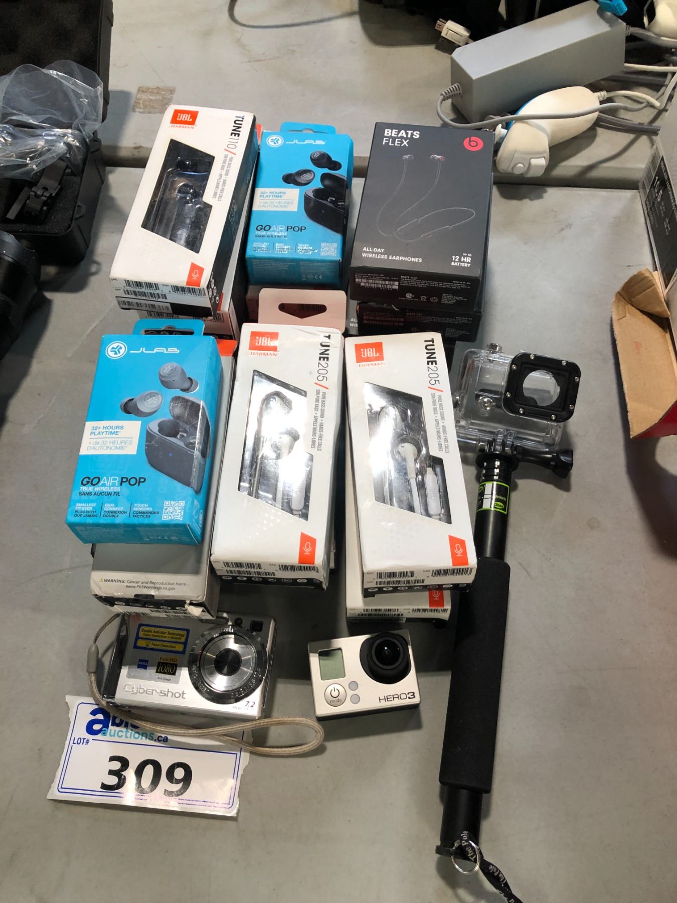 VARIOUS WIRELESS EARPHONES, HERO3 NO CHARGER AND SONY DSC-W80 CAMERA WITHOUT CHARGER