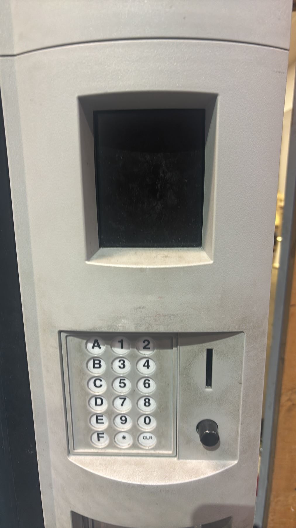 VENDING MACHINE WITH 45 PRODUCT SLOTS, DISPLAY SCREEN & BUTTON KEYPAD *NO KEY*
