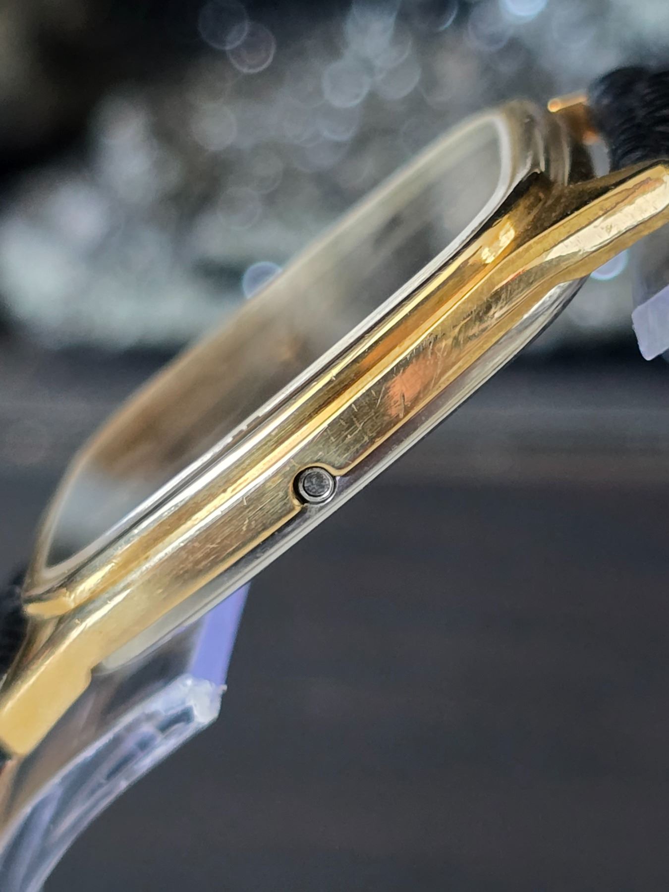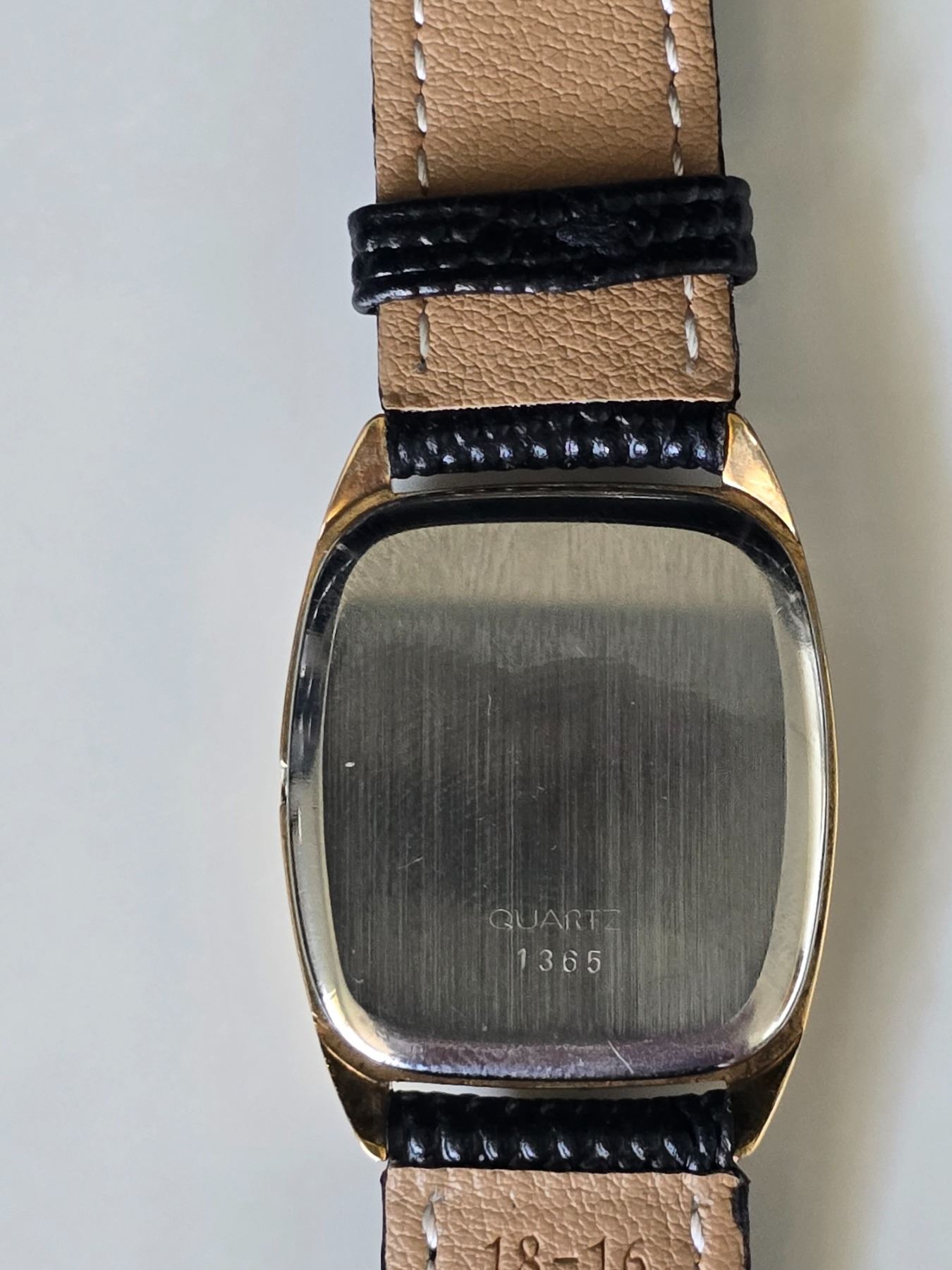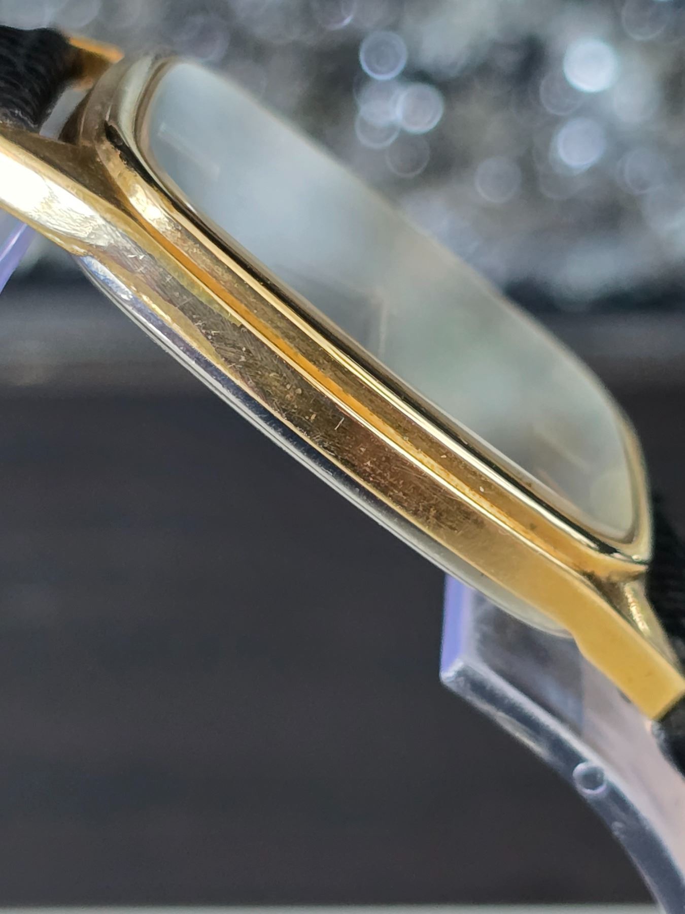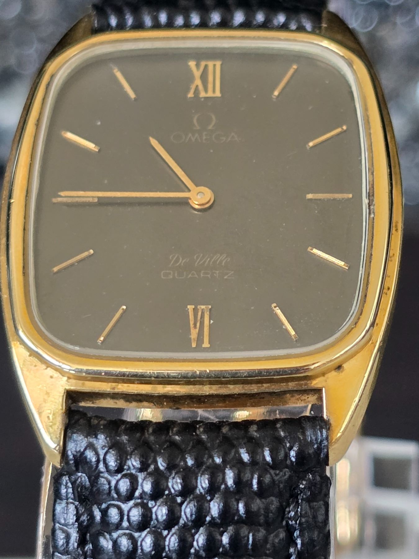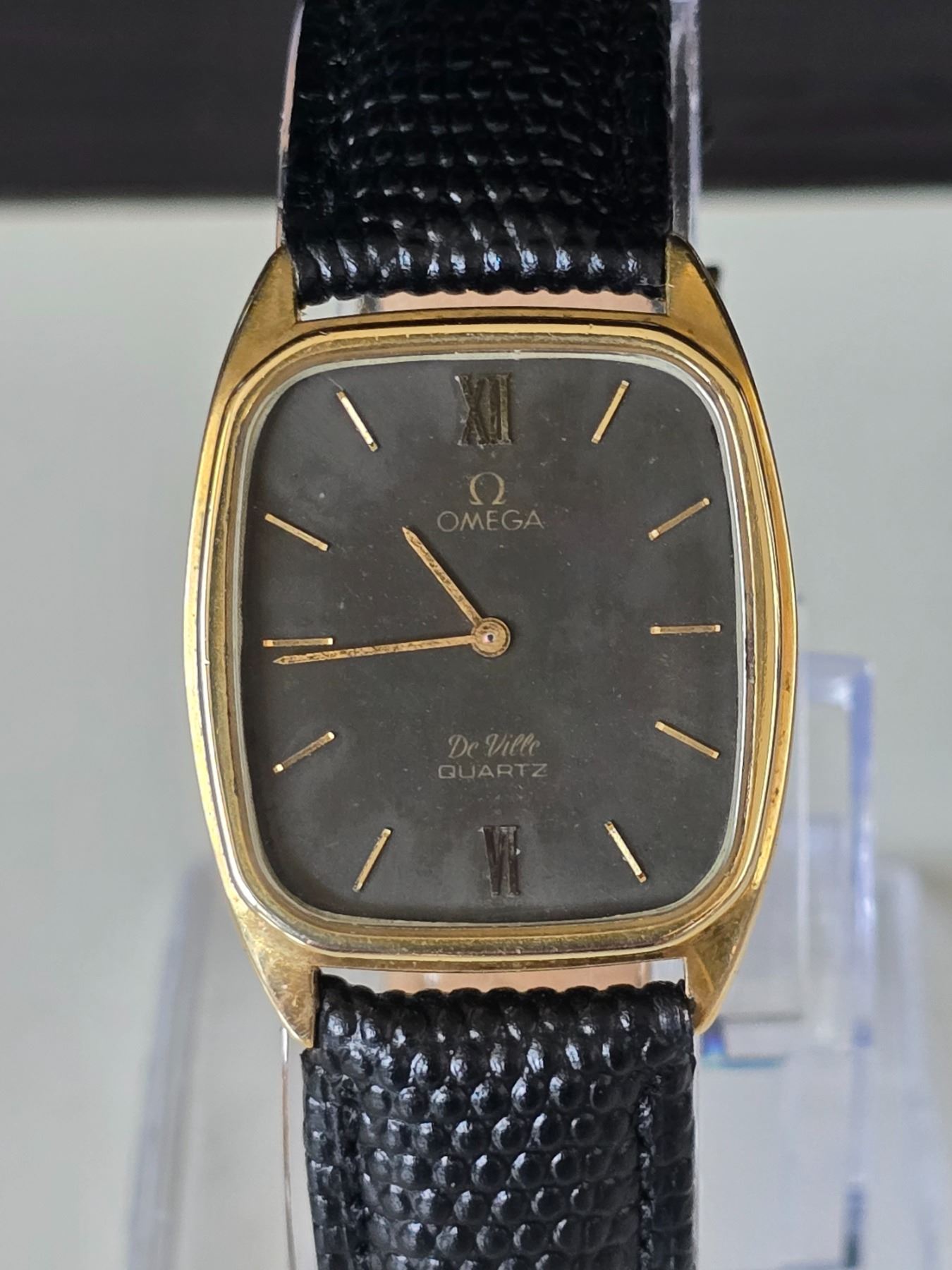 VERY RARE BLACK DIAL OMEGA QUARTZ WATCH, STAINLESS STEEL BACK CASE & 20 MICRONS GOLD PLATED CASE