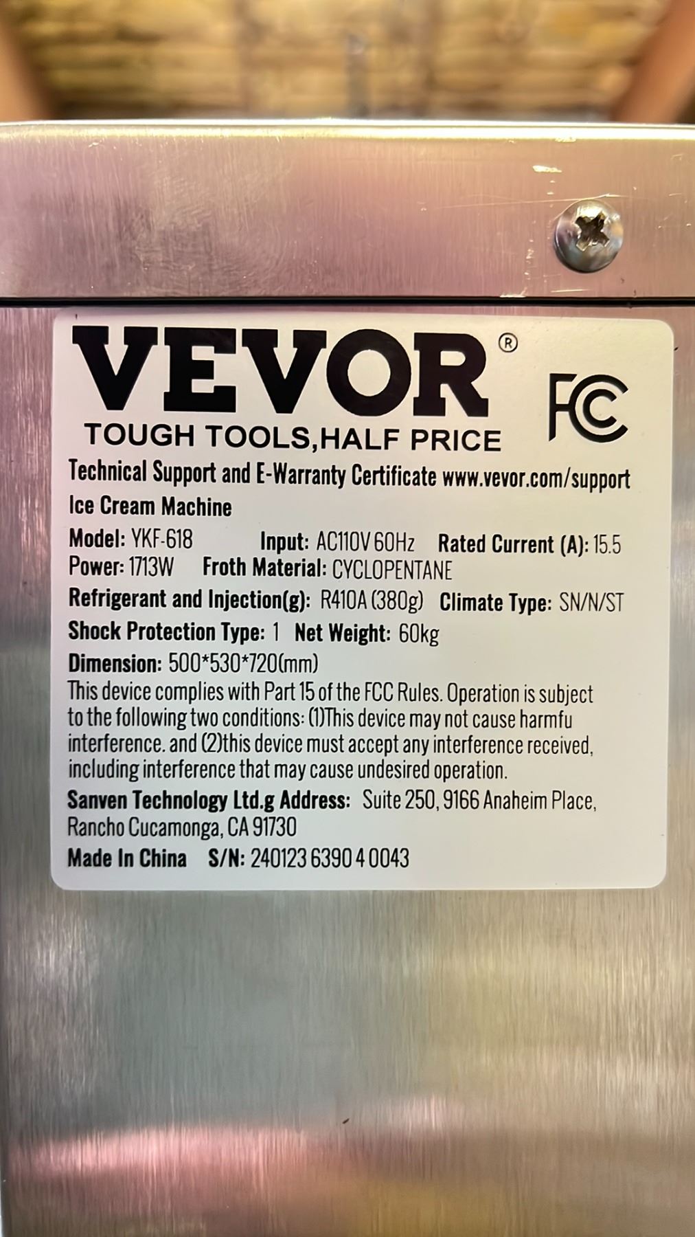 VEVOR ICE CREAM MACHINE YKF-618 (UNKNOWN WORKING CONDITION, MAY BE MISSING PARTS & PIECES)