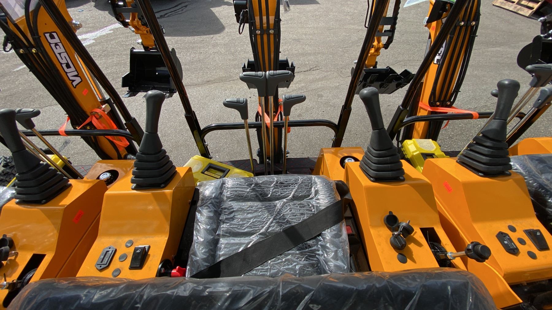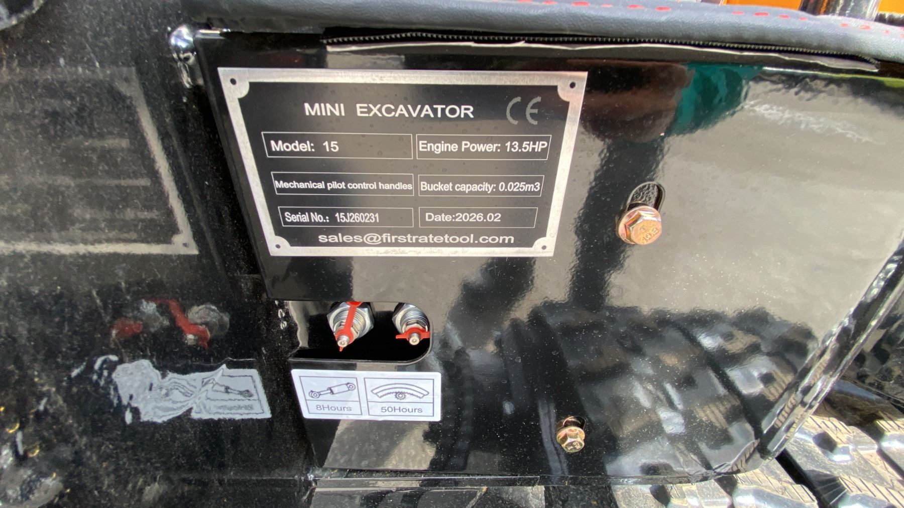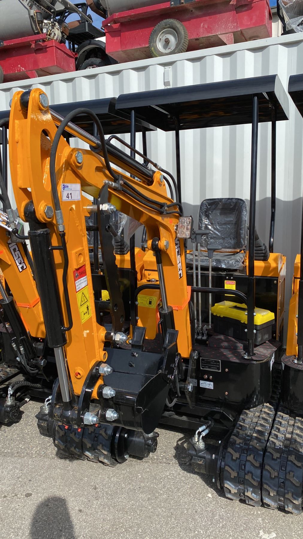 VICSEC VC15 YELLOW 13.5 HP GAS POWERED RUBBER TRACK MINI EXCAVATOR WITH ATTACHED DIGGING BUCKET, GRADER BLADE, STATIONARY CLAW, MINI TOOL KIT & KEYS *MEETS CANADIAN EMISSIONS CONTROL REGULATIONS* *MUST HAVE PROPER EQUIPMENT TO TRANSPORT*