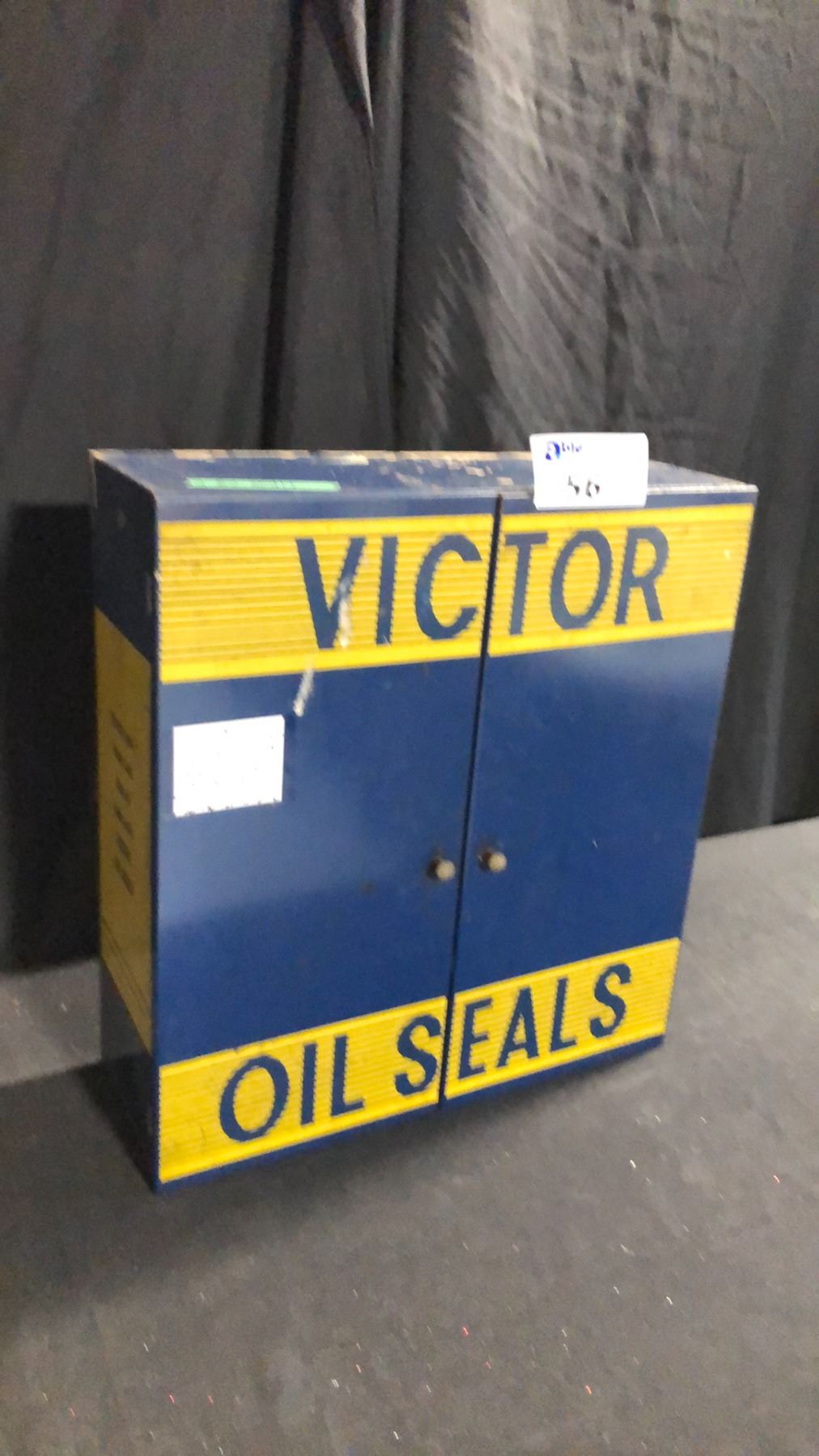 VICTOR OIL SEALS CABINET 20" X 21" X 8" WITH 67 SEALS BOXED AND NUMBERED