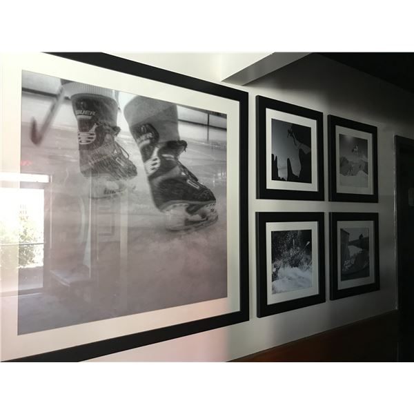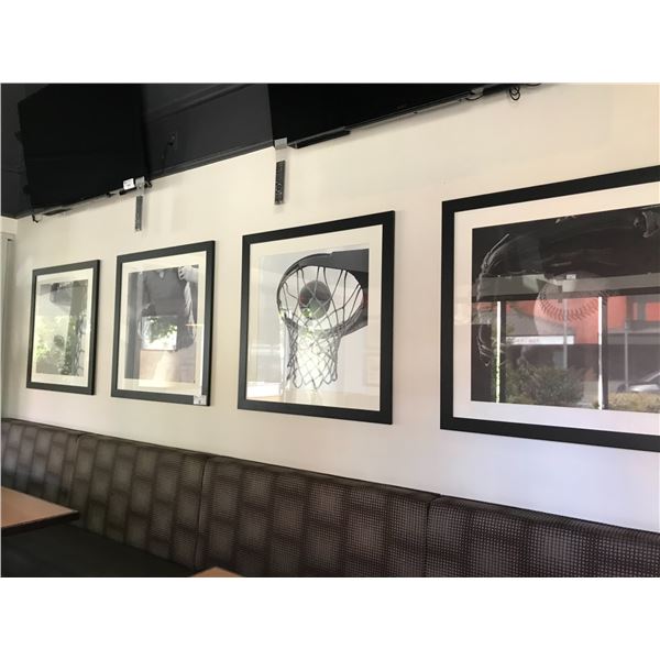 4 BLACK AND WHITE SPORTS PRINTS. 36" X 36"