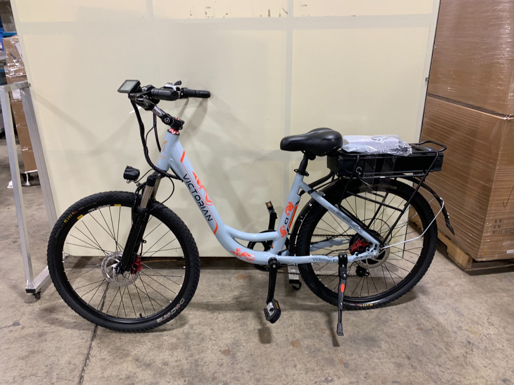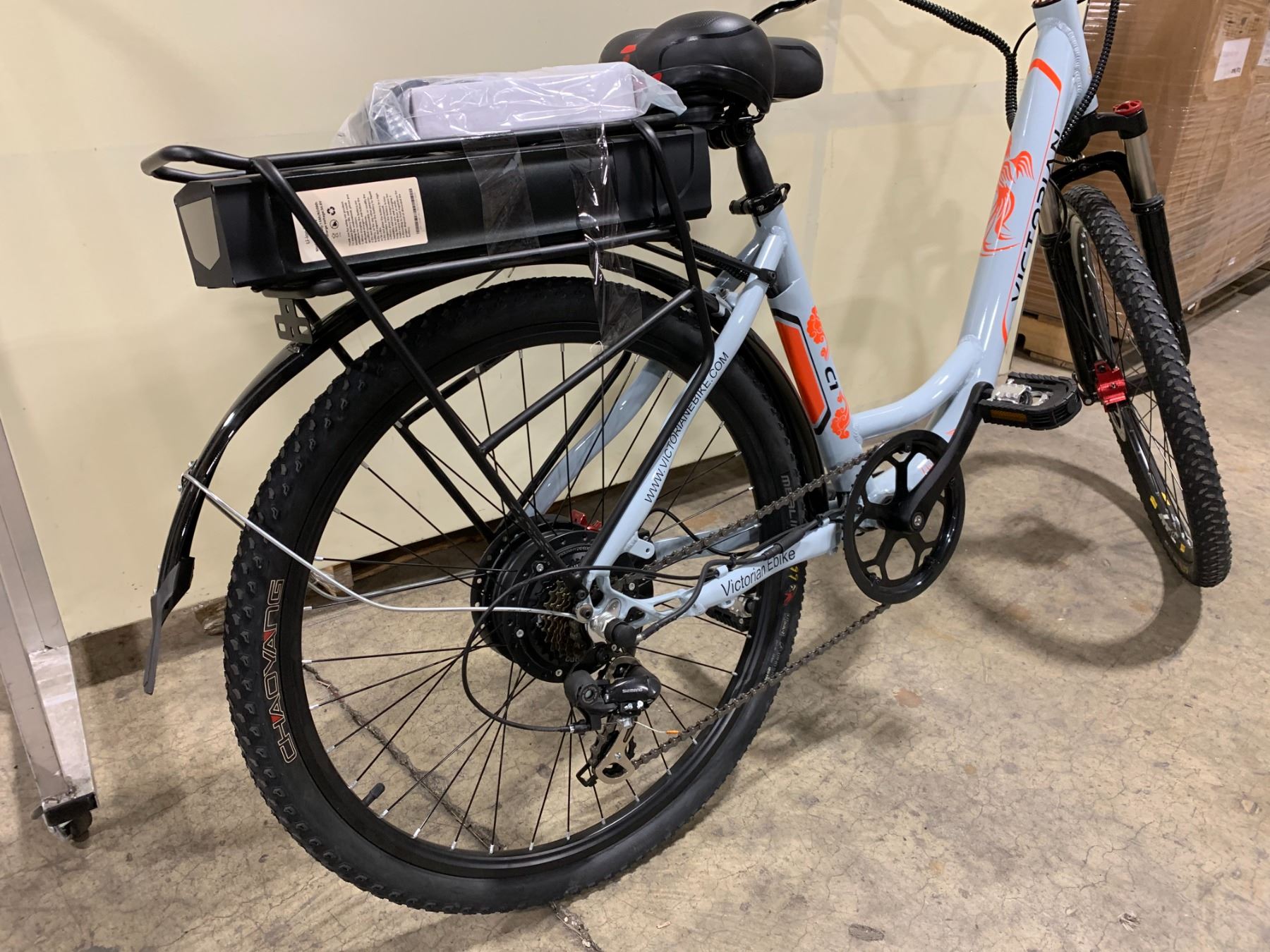 VICTORIAN C1 GREY/ORANGE ELECTRIC BIKE, 500W, 32 KMH MAX SPEED, 48 VOLT BATTERY, UP TO 65 KM RANGE, 26" TIRES, DYISLAND FRONT/BACK DISC HYDRAULIC BRAKES, 7 GEARS, 6061 ALUMINUM ALLOY FRAME, 48LBS WEIGHT, FRONT SUSPENSION ( *IN BOX* )