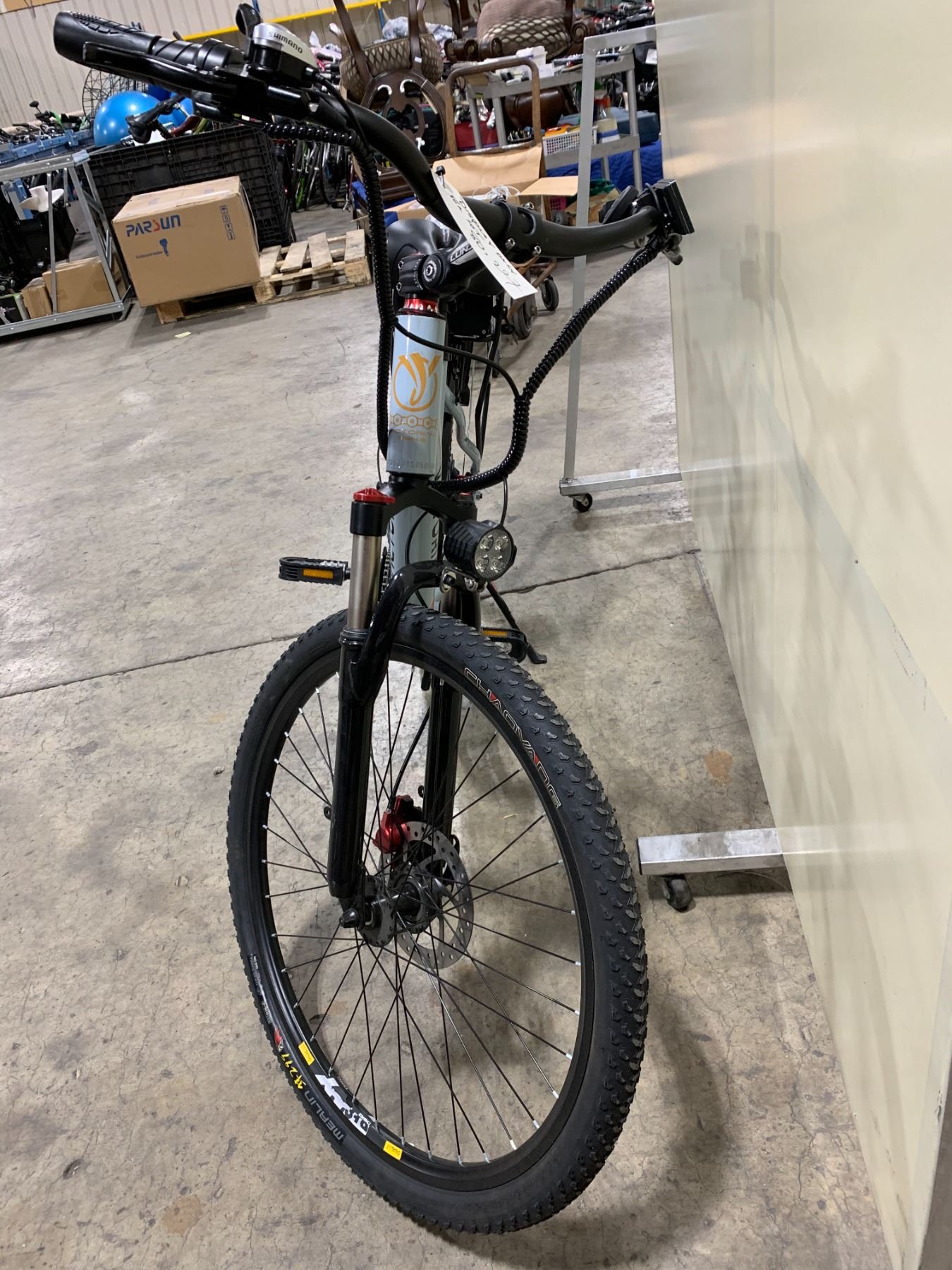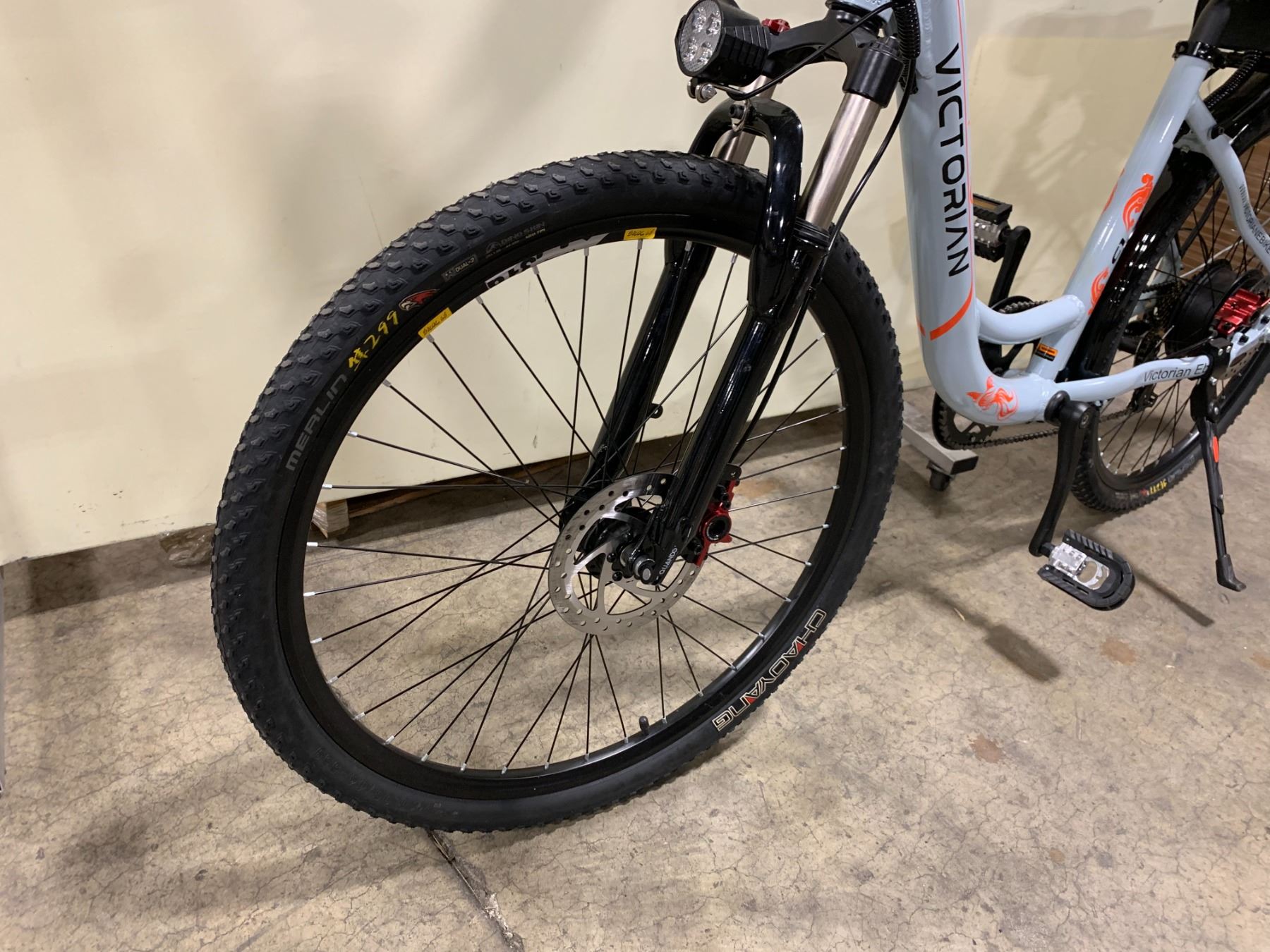 VICTORIAN C1 GREY/ORANGE ELECTRIC BIKE, 500W, 32 KMH MAX SPEED, 48 VOLT BATTERY, UP TO 65 KM RANGE, 26" TIRES, DYISLAND FRONT/BACK DISC HYDRAULIC BRAKES, 7 GEARS, 6061 ALUMINUM ALLOY FRAME, 48LBS WEIGHT, FRONT SUSPENSION ( *IN BOX* )