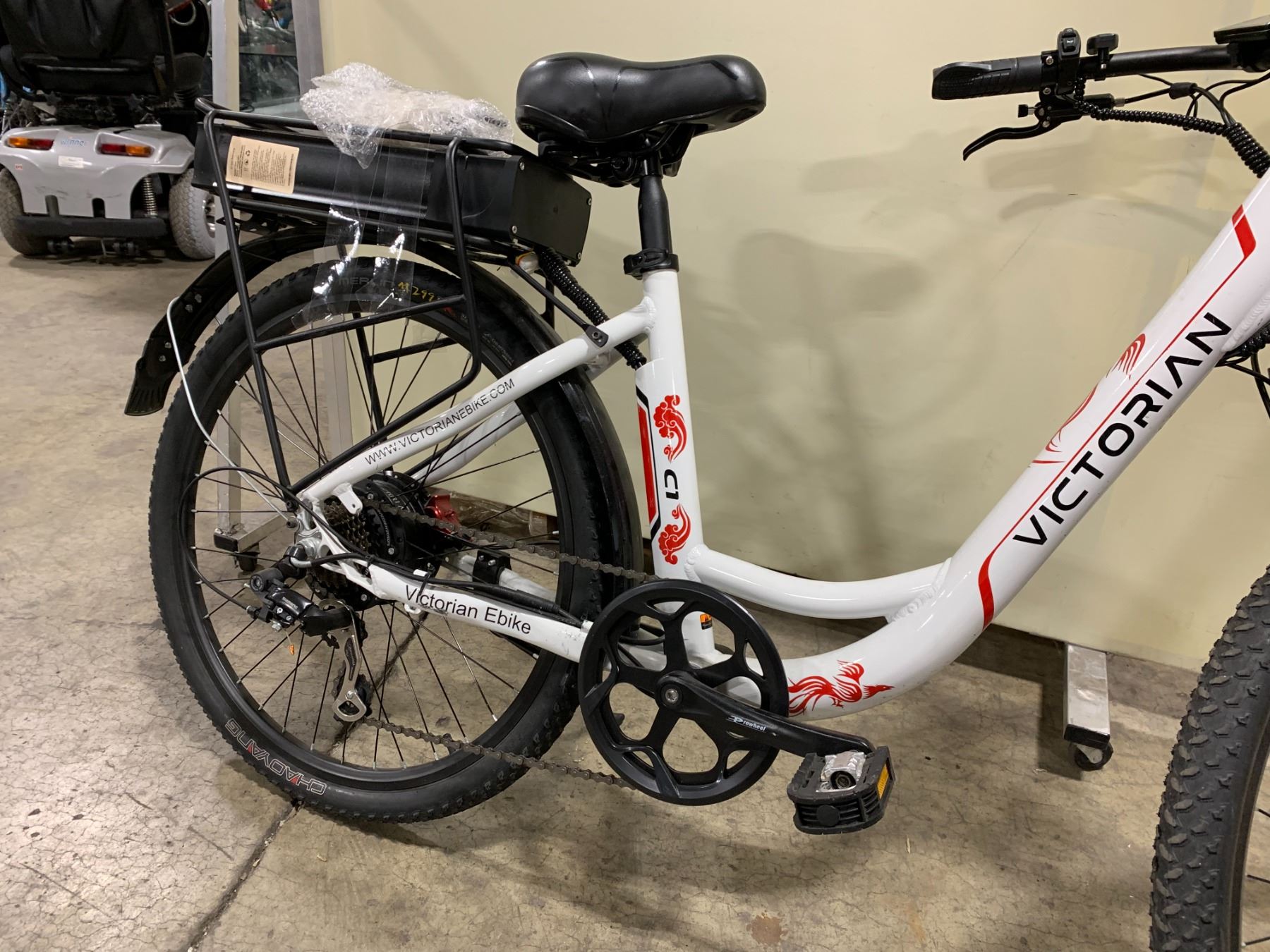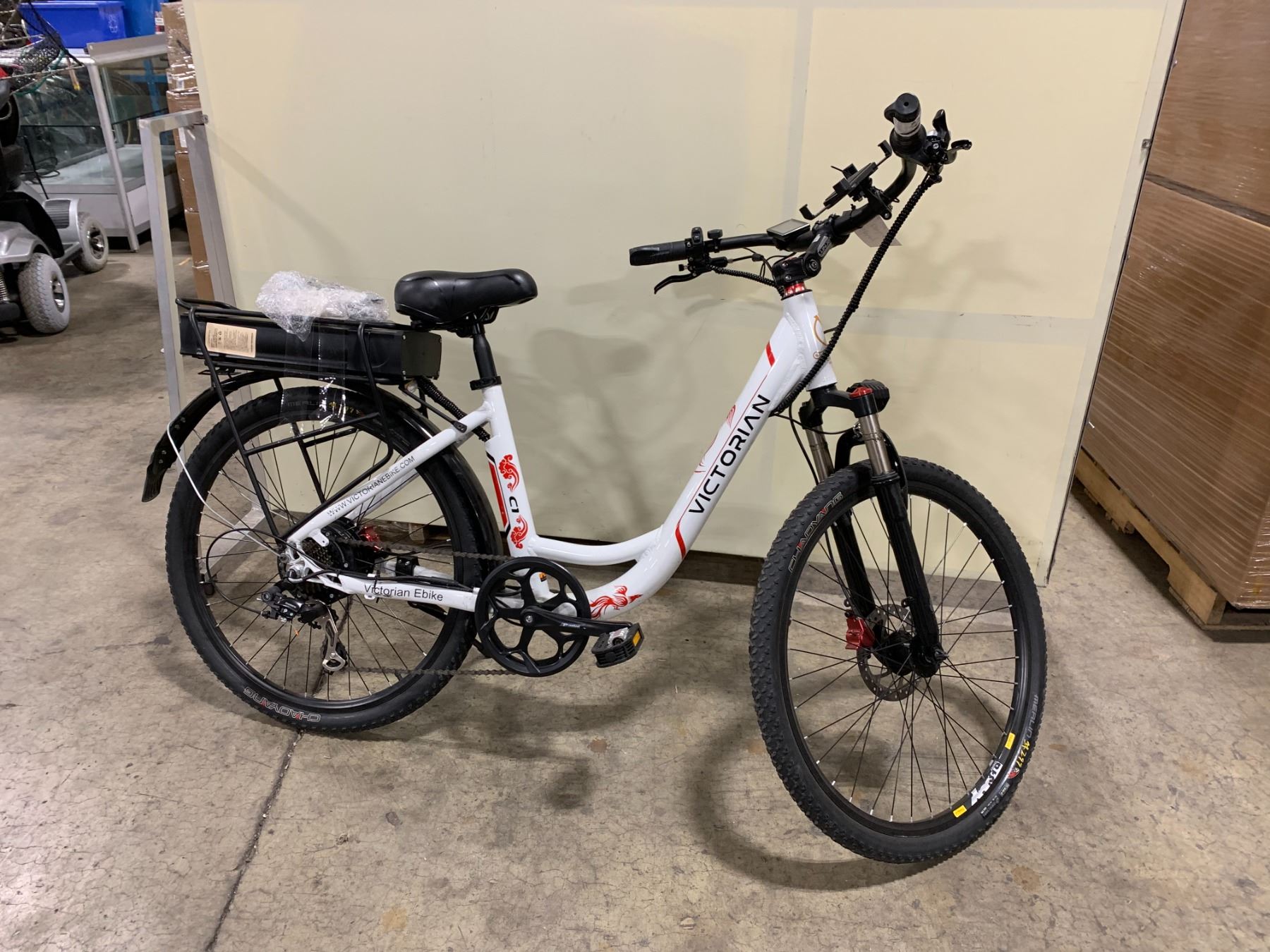 VICTORIAN C1 WHITE/RED ELECTRIC BIKE, 500W, 32 KMH MAX SPEED, 48 VOLT BATTERY, UP TO 65 KM RANGE,