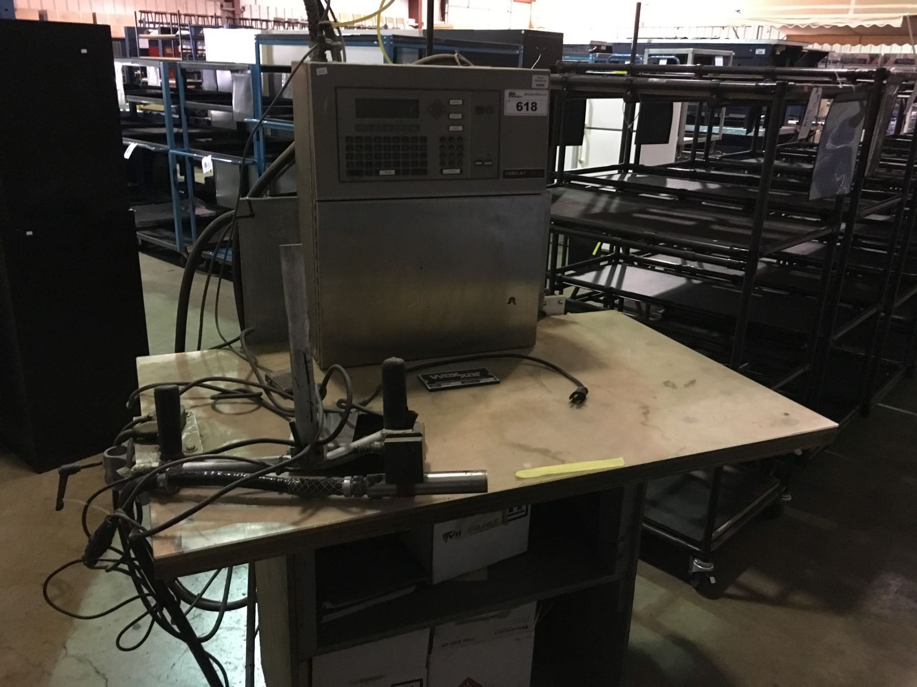 VIDEOJET EXCEL 178I INK JET PRINTER ON MOBILE STAND