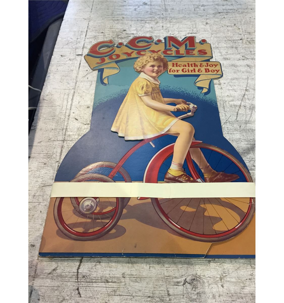 VINTAGE 1940-50S CCM JOY CYCLES HEALTH AND JOY FOR GIRL AND BOY CARDBOARD BICYCLE ADVERTISEMENT