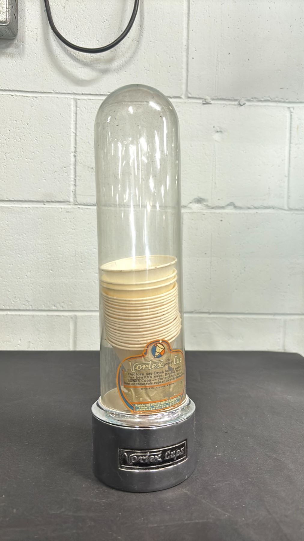 VINTAGE (1951) VORTEX GLASS CONE CUP DISPENSER