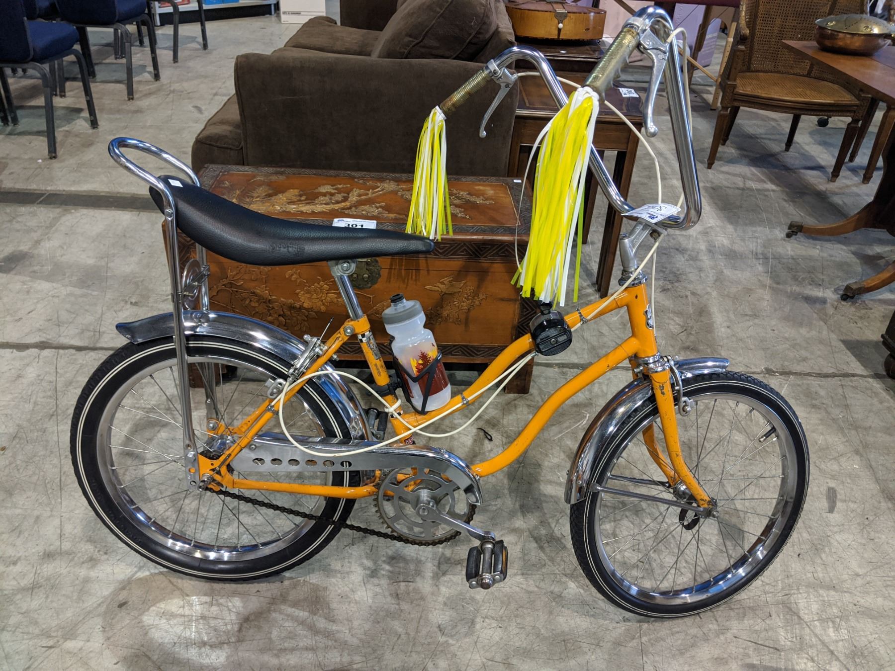 VINTAGE 60'S ORANGE BICYCLE WITH TASSLES AND BANANA SEAT