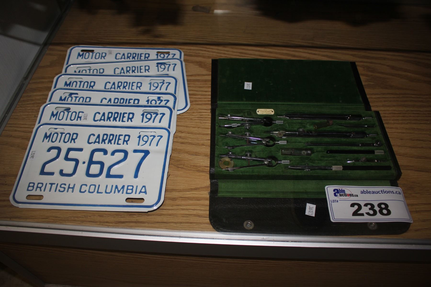 VINTAGE BC LICENSE PLATES AND KEUFFEL & ESSER MERCURY DRAFTING SET