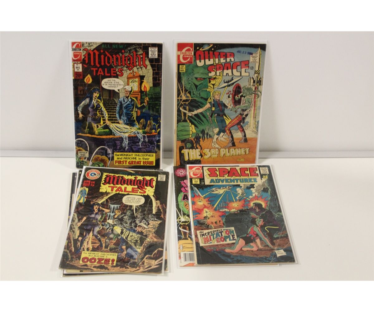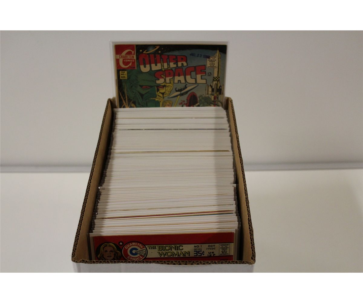 VINTAGE CHARLTON COMICS HORROR/ FANTASY/ SCI-FI SHORT BOX (1960'S-80'S) SILVER & BRONZE AGE SHORT BOX FULL OF RUNS FROM THE 3 GENRES, NO DUPLICATES! FEATURING A SLEW OF INDUSTRY TALENT - INCLUDES 9 #1'S. MIXED GRADES, GLOSSY, TIGHT & SUPPLE, LOTS OF OVERSTREET GUIDE VALUE, CHOICE BOX!