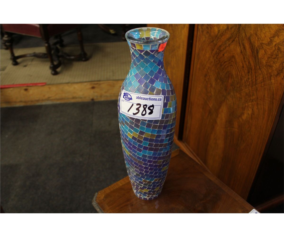 VINTAGE COLOURED GLASS MOSAIC VASE, 18" HIGH
