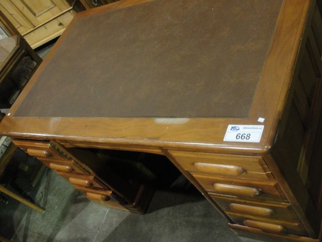 VINTAGE DOUBLE PEDASTOL MAHOGANY LEATHER TOP DESK FEATURES DOVE TAIL CONSTRUCTION ON DRAWERS
