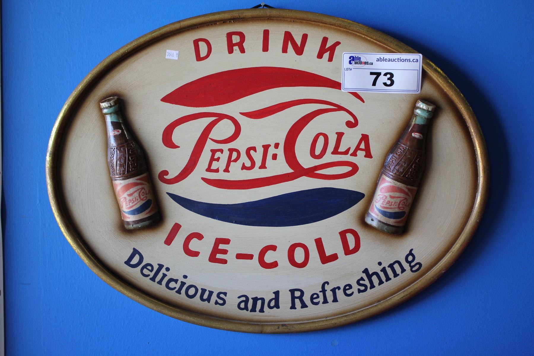 VINTAGE "DRINK PEPSI:COLA, ICE-COLD" WOOD SIGN