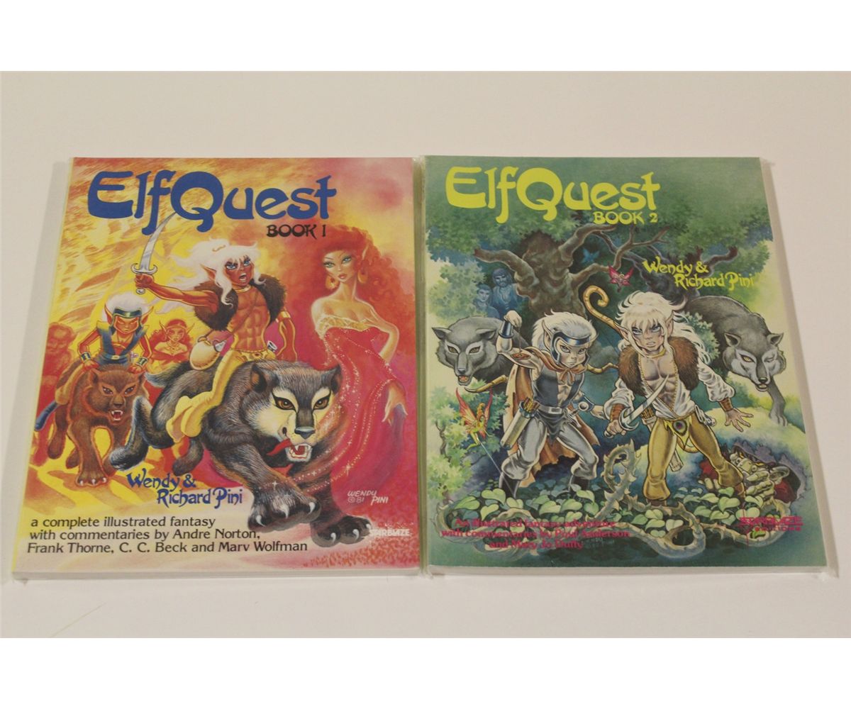 VINTAGE ELFQUEST STARBLAZE EDITIONS BOOKS 1 & 2 (1981) ATTRACTIVE 32 YEAR OLD TRADES WITH COMMENTARIES FROM NORTON, THORNE, CC BECK & MANY MORE INDUSTRY TALENTS. . HIGH GRADE, NM RANGE & HARD TO FIND, BEAUTIFUL BOOKS!
