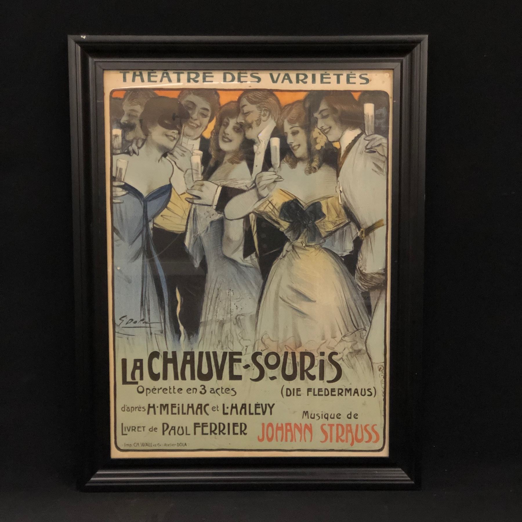VINTAGE FRENCH FRAMED MOVIE POSTER, "LA CHAUVE SOURIS", 27'' X 35'' INC. FRAME