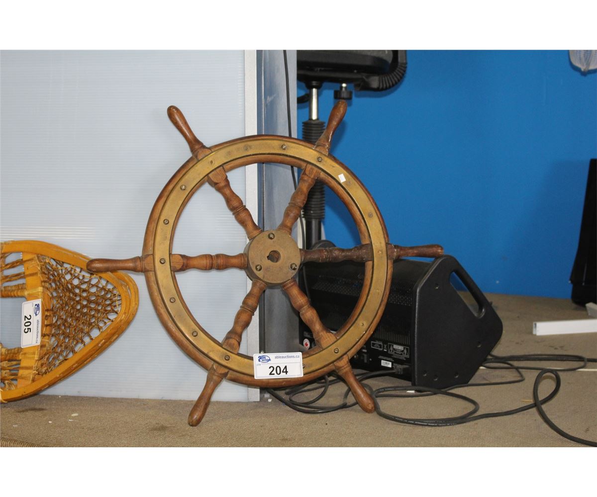 VINTAGE HEAVY BRASS AND WOOD SHIPS WHEEL